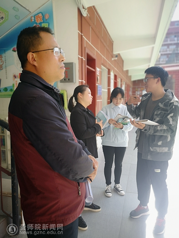 巡视老师与李应琼老师(左三)就实习生问题进行交流