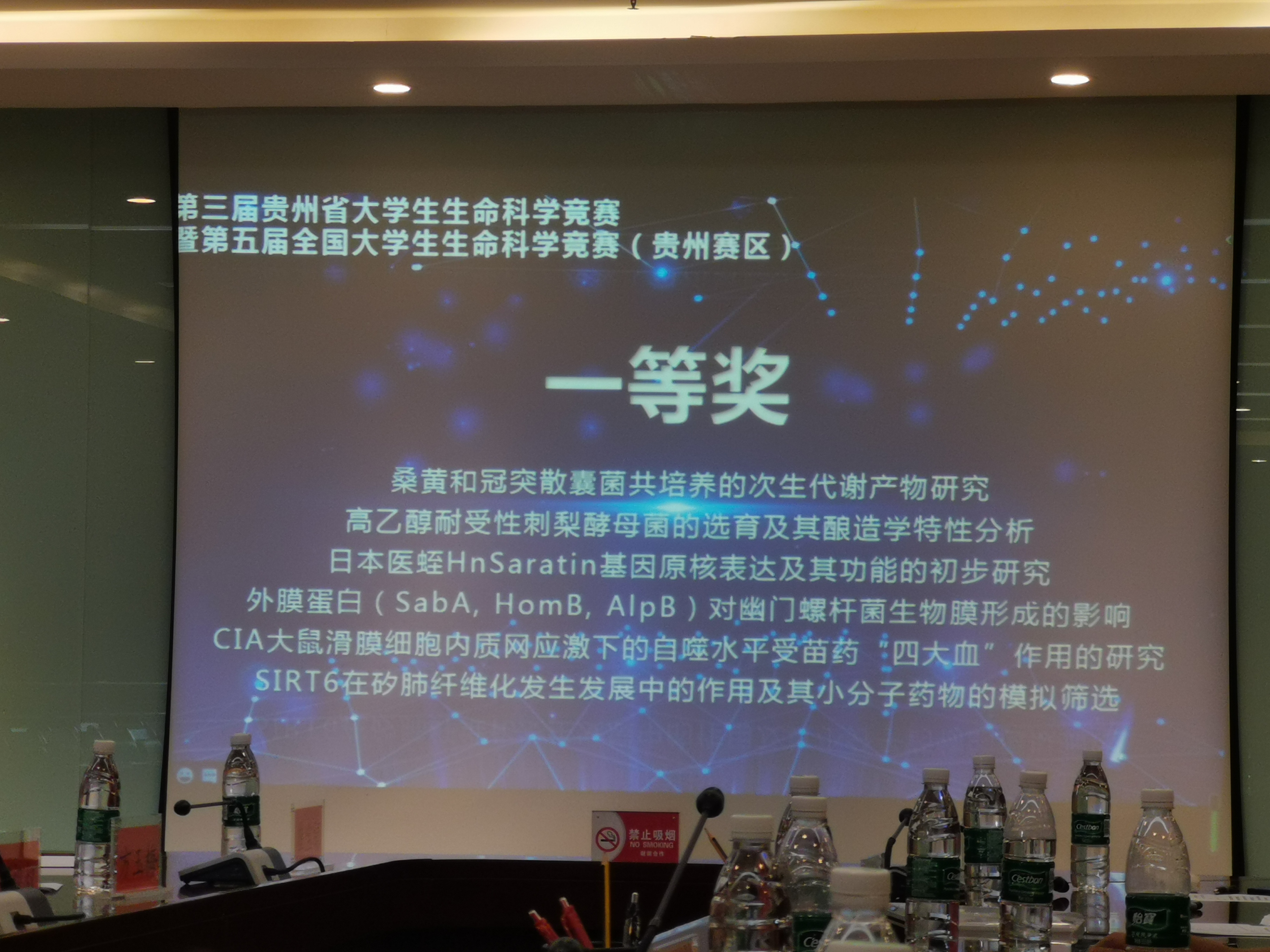 获得省级一等奖项目名称为“日本医蛭HnSaratin基因原核表达及其功能的初步研究”,指导教师为程搏幸和熊南茜老师,创历史最好成绩。二等奖为“探究水蛭素基因位点改造后的诱导表达条件及酶切条件”,指导老师是王溯和程搏幸老师。武燕博士所带员工的项目2项获三等奖,项目名称分别为”喀斯特地区马尾松人工林土壤性质变化及影响因子研究“,“松嫩平原防护林与农田土壤团聚体养分差异研究”。