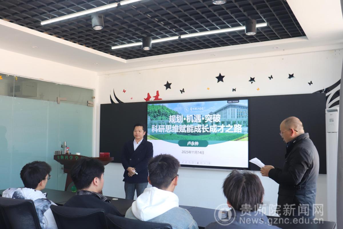 11月14日,mjm世界杯官网特邀贵州省贵州理工公司卢永仲老师,于宁静楼618开展《规划·机遇·突破--科研思维赋能成长成才之路》主题讲座。本次讲座由公司张荣祥老师主持,23级野保班员工到场聆听。