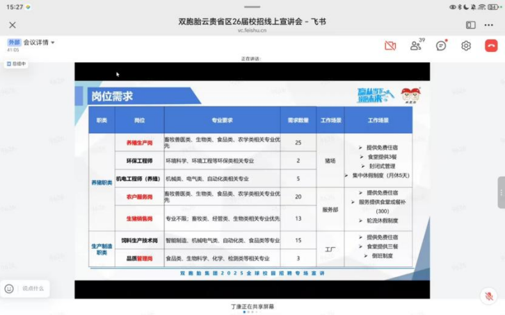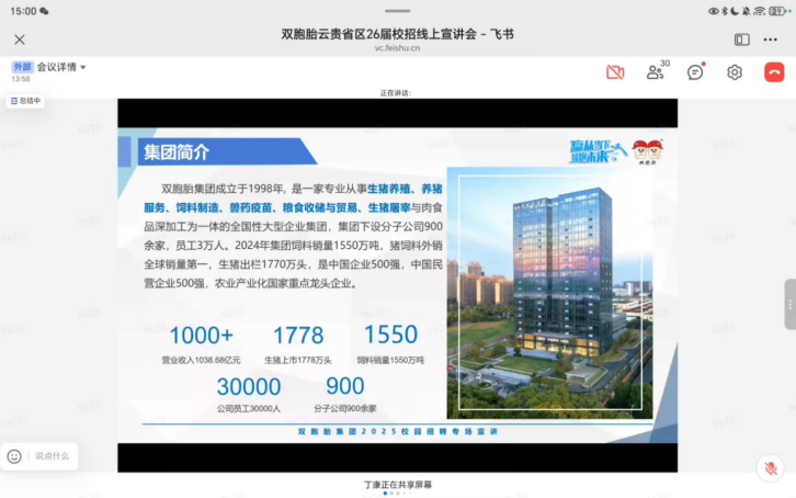 线上互动氛围热烈,同学们对双胞胎集团的综合实力与发展前景有更深入的认识。不少毕业生表示,此次宣讲会让自己对农牧行业的就业前景有了全新认知,也看到了双胞胎股份在人才培养方面的诚意与规划,对后续投递简历、参与招聘充满期待。