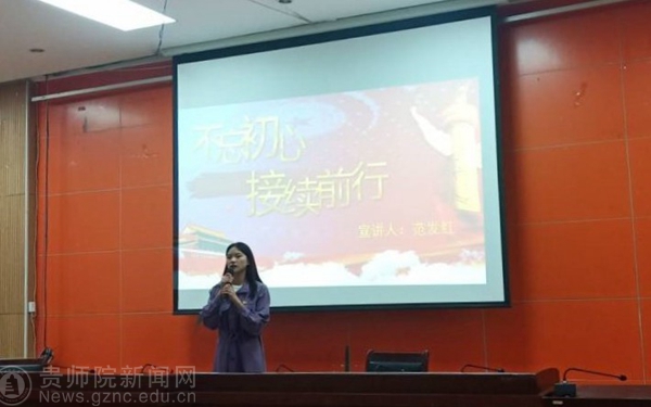 活动伊始,主持人首先简单介绍活动流程及评分细则,其中本次活动通过视频录制进行线下评分。接着,甘圣义进行讲话,她首先介绍了本次宣讲的目的并激励同学们努力展现自己,其次她希望同学们肩负起使命与担当。紧接着,全体人员起立奏唱国歌。随后,宣讲正式开始,由23名宣讲人依次进行演讲。他们主要围绕“四史”、“我是师范生”、“新青年新思想”三个方面进行宣讲。宣讲过程,宣讲选手个个意气风发,精神抖擞,语言铿锵有力充分展现了当代青年的精神积极进取的精神风貌。此外,活动尾声现场听讲同学纷纷发表心得体会,他们表示在此过程中收获颇丰,作为当代青年时刻肩负自身的使命,并为之不断努力提高自身素养,努力成为合格的国家建设者和接班人。