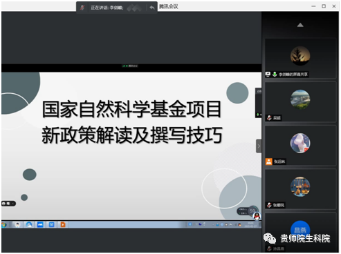 李剑锋同志从国家自然基金的意义、定位、机构设置、申请要求、可能的一些学术不端以及撰写过程中的一些技巧内容进行了深入讲解。