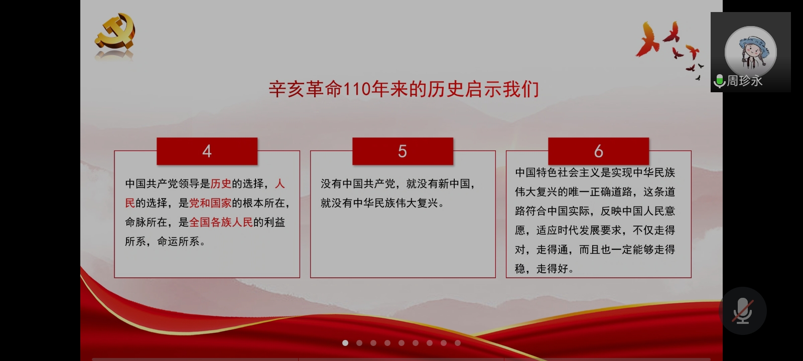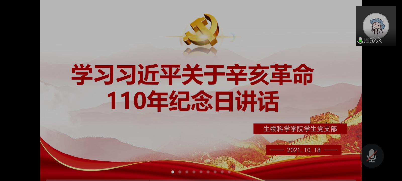 为引导员工党员认真学习习近平总书记重要讲话精神,感受先辈们的牺牲精神和伟大的革命情怀,学习和弘扬他们为振兴中华而矢志不渝的崇高精神。10月18日晚,mjm世界杯官网员工党支部于腾讯会议开展“弘辛亥革命精神,担振兴中华之使命”党课学习。参与本次活动的有全体正式党员及预备党员。