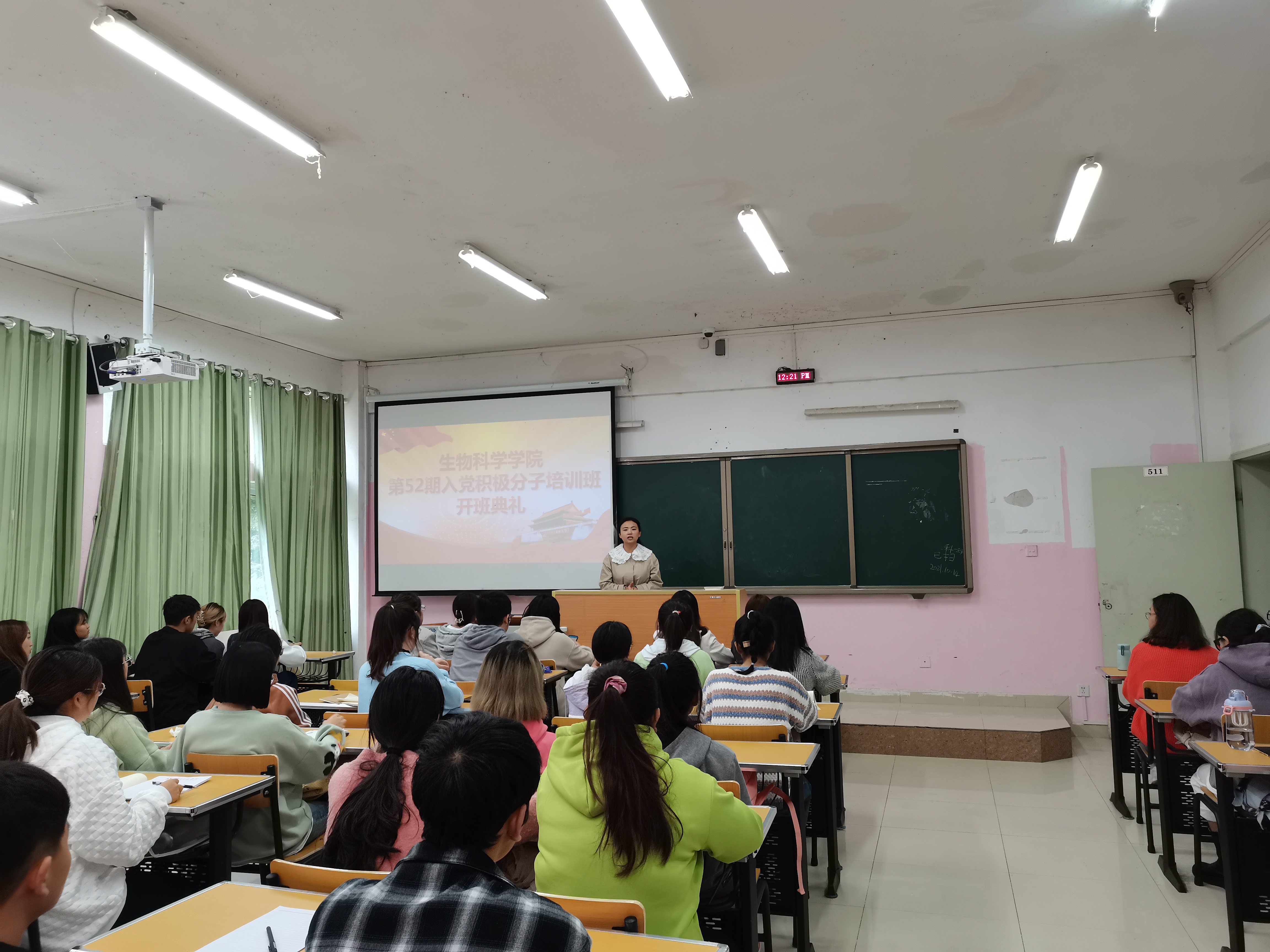 接着,李育芳主讲“中国共产党发展史”,李育芳首先简单介绍了党发展史的四个阶段,接着向大家介绍了中国共产党成立的历史背景、中国共产党成立的条件,重点介绍了中国共产党成立过程经历的曲折过程,最后李育芳对本次课程进行总结,希望各位入党积极分子能够保持党的优良作风,做到两个“务必”,“务必继续保持谦虚谨慎、不骄不躁,务必继续保持艰苦奋斗的作风”。