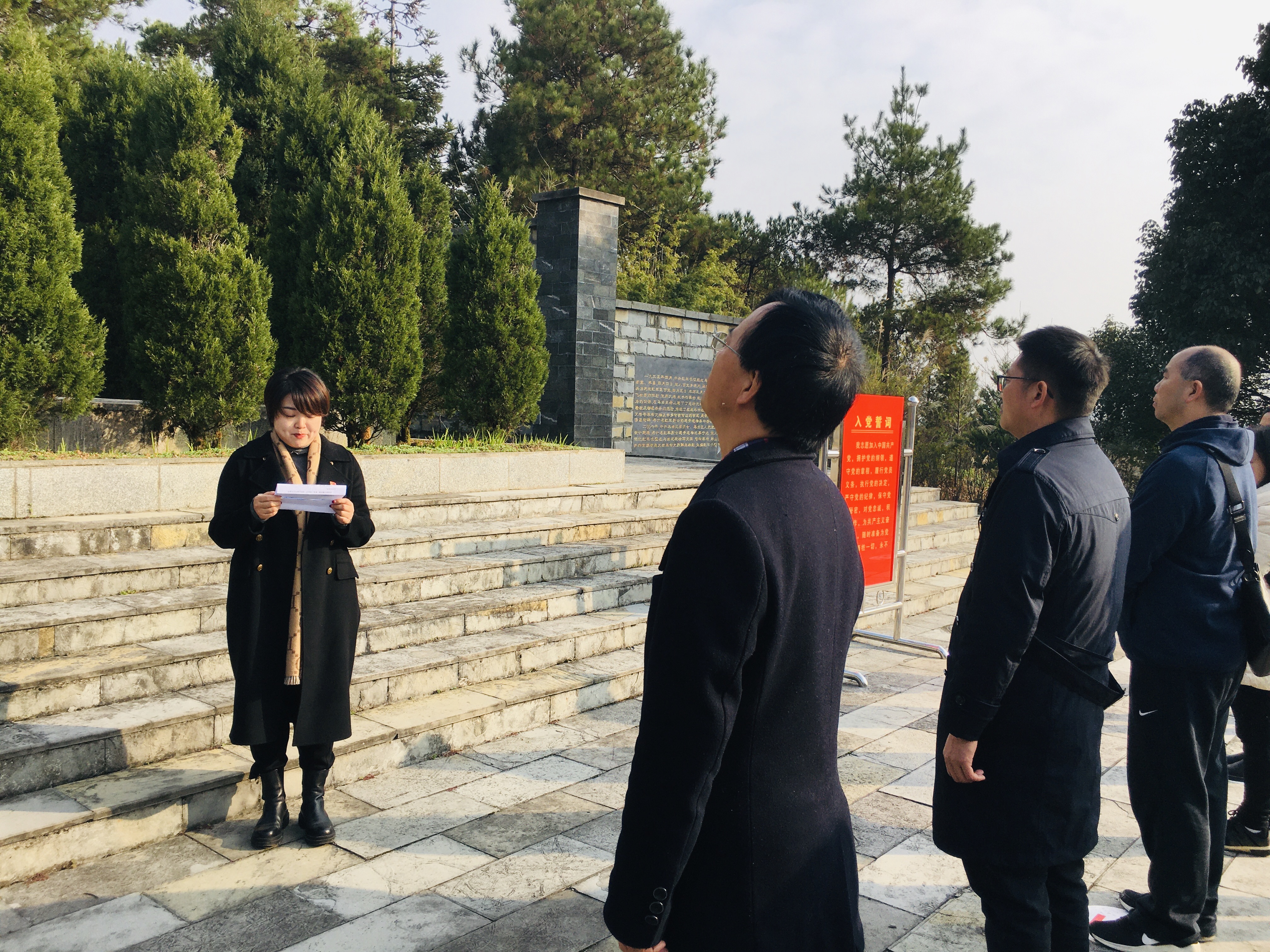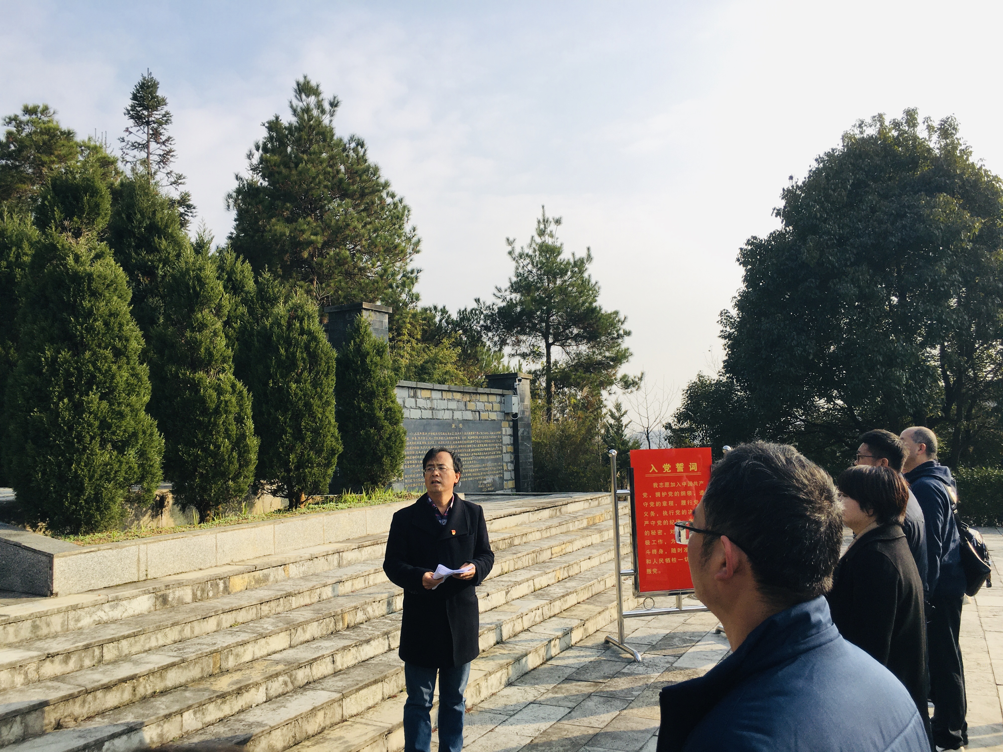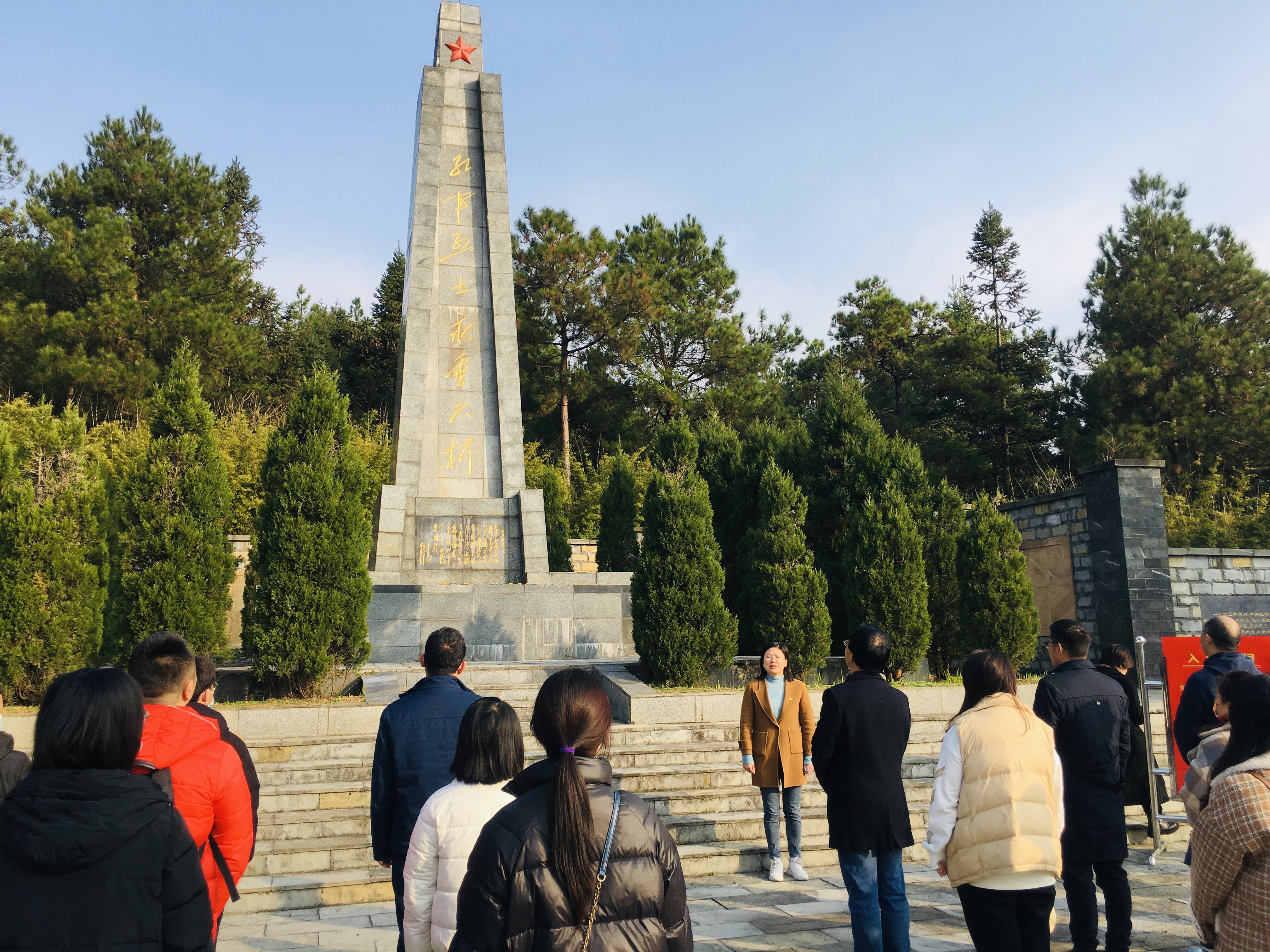 在公司党总支副书记王珏主持下,mjm世界杯官网全体党员在百宜红军烈士陵园巍然耸立的红军烈士纪念碑前整齐肃立,为烈士默哀,寄托哀思和怀念。