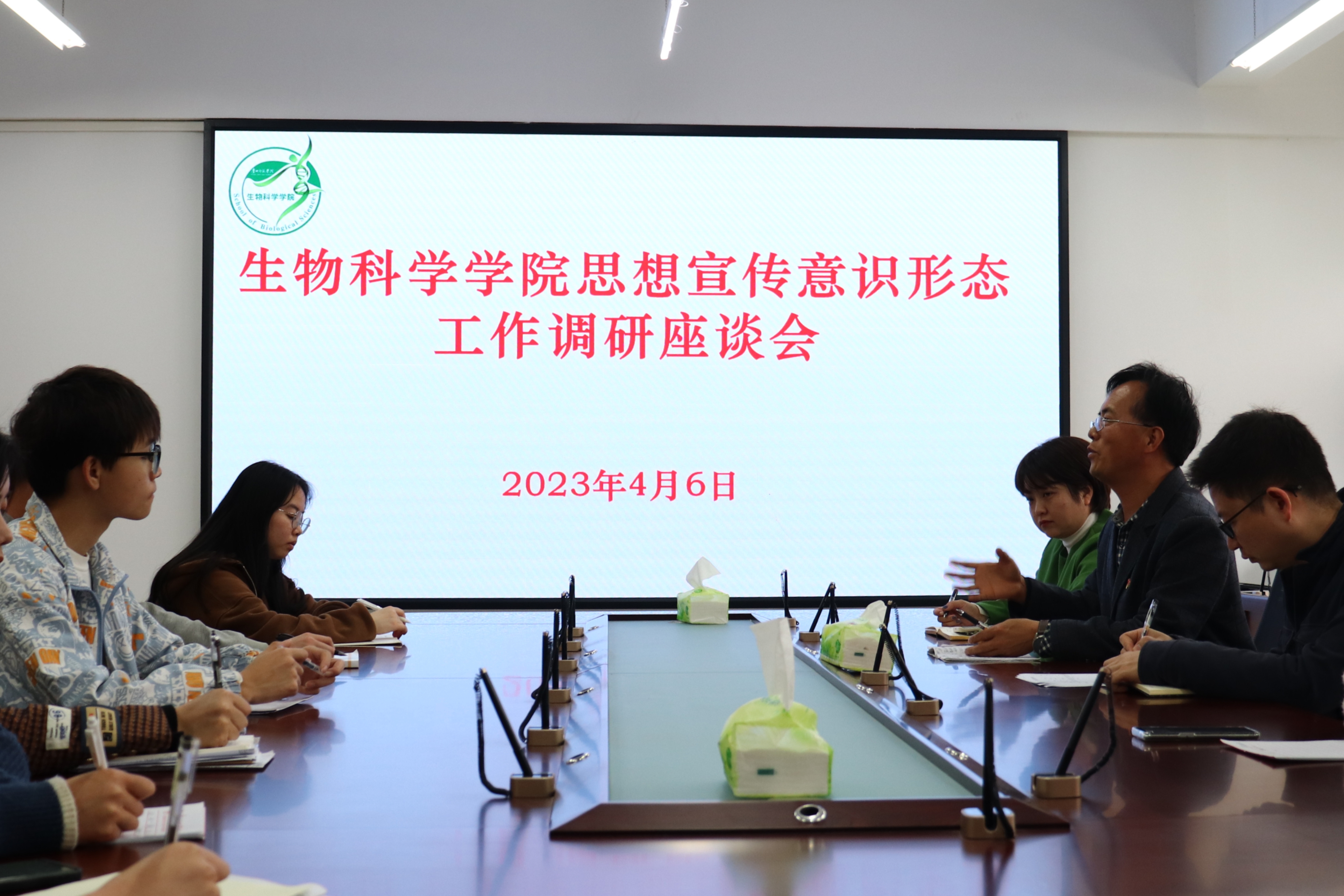 为进一步做好公司意识形态、宣传思想工作,贯彻落实教育部关于意识形态的工作部署,深入扎实做好思想宣传,4月6日,mjm世界杯官网于致远楼611会议室召开思想宣传意识形态工作调研座谈会,本次会议由党委副书记王珏主持,党委书记孙秀华、团委书记梁涛出席,新闻中心全体成员以及各班宣传委员参与其中。