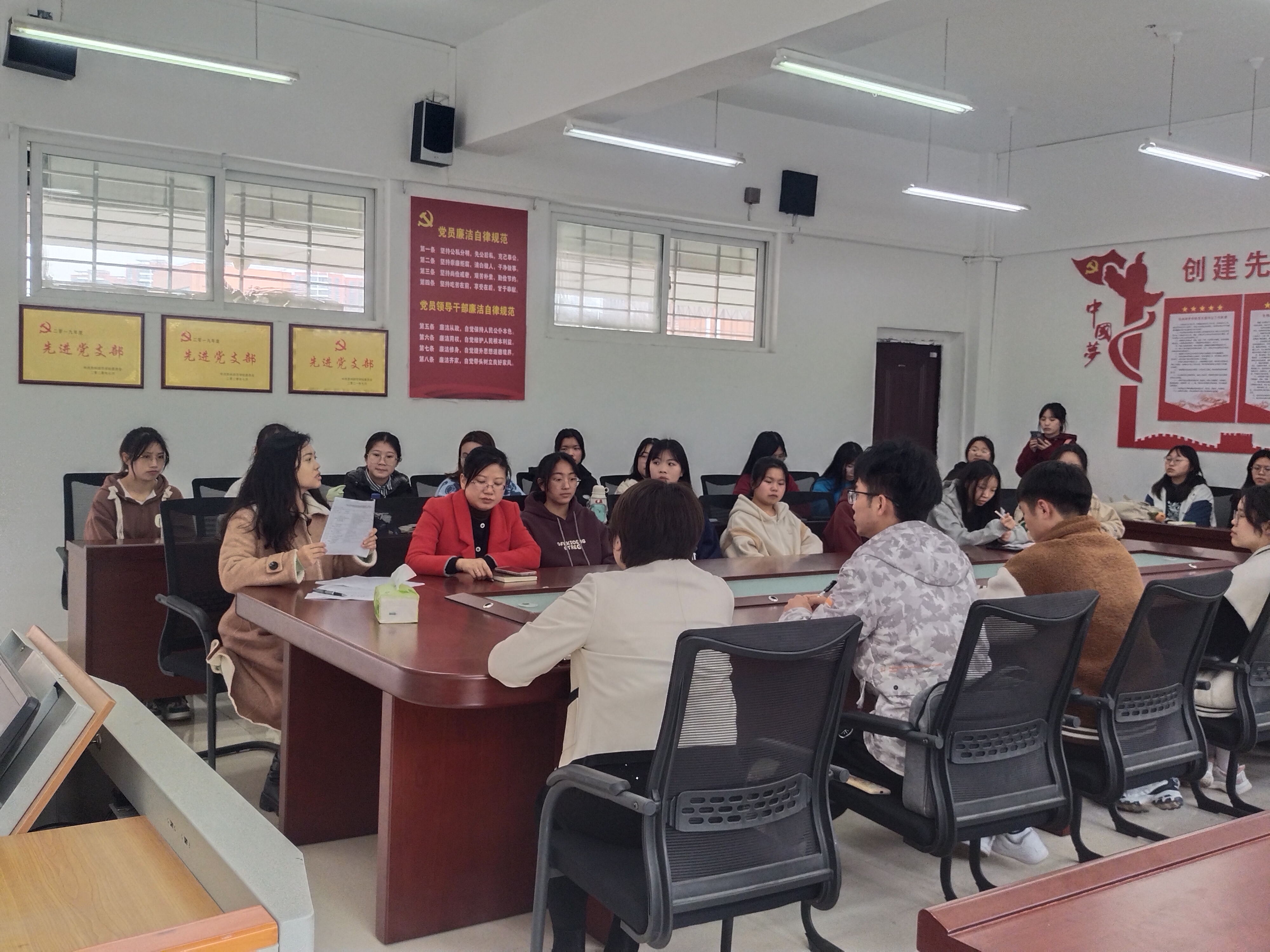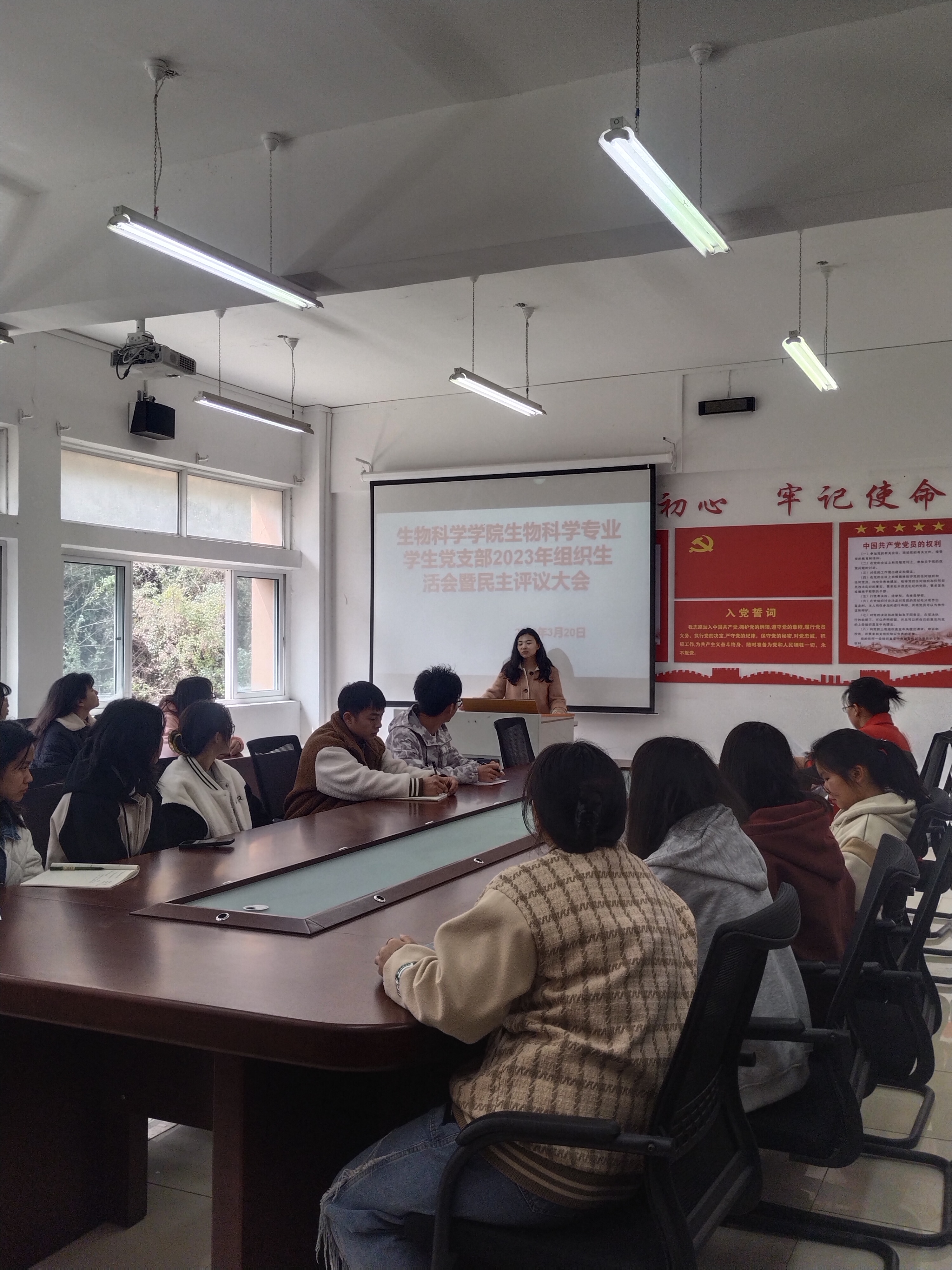 此次组织生活会和民主评议大会促进了全体党员正视不足、立整立改,在反思和自省自警中得到不断地成长和淬炼。同时也给支部作了一个新的发展方向,将学科知识与党性知识运用于实践中,在实践中践行一名党员的角色,更好的服务于人民!