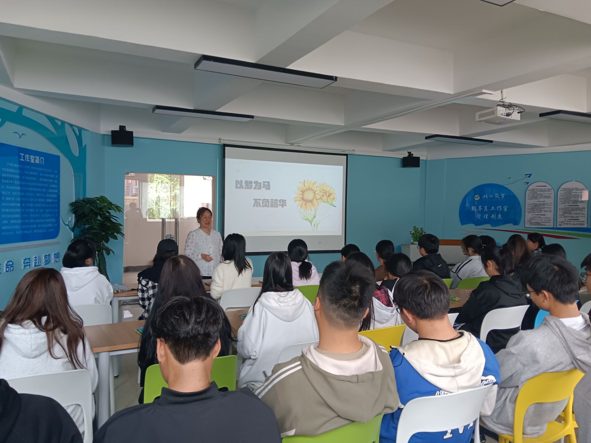 10月15日中午,mjm世界杯官网应用生物科学专业系主任罗倩教授深入“一站式”员工社区在溯心筑梦辅导员工作室为2024级新生进行了“专业发展和学业规划”专题讲座。