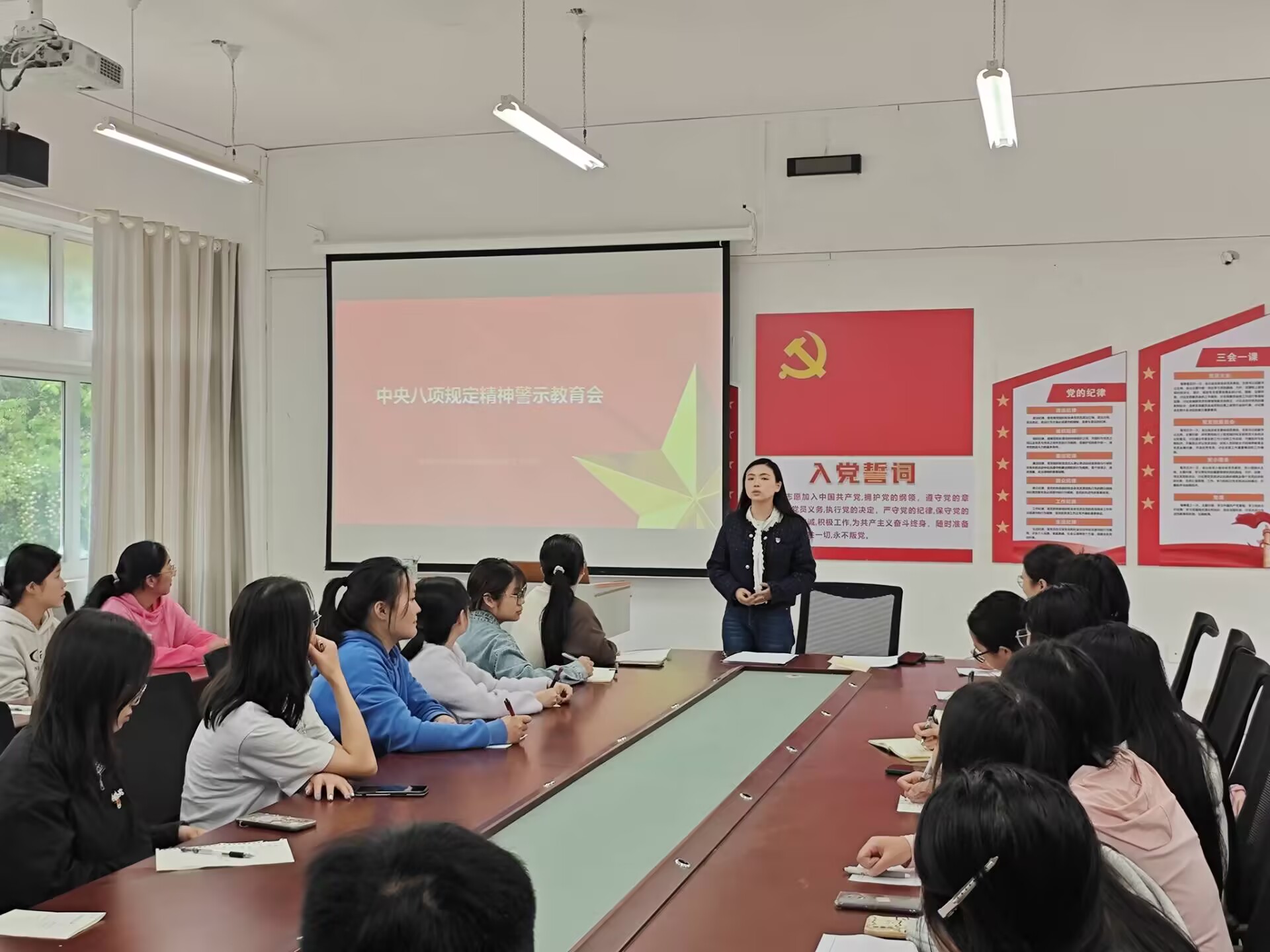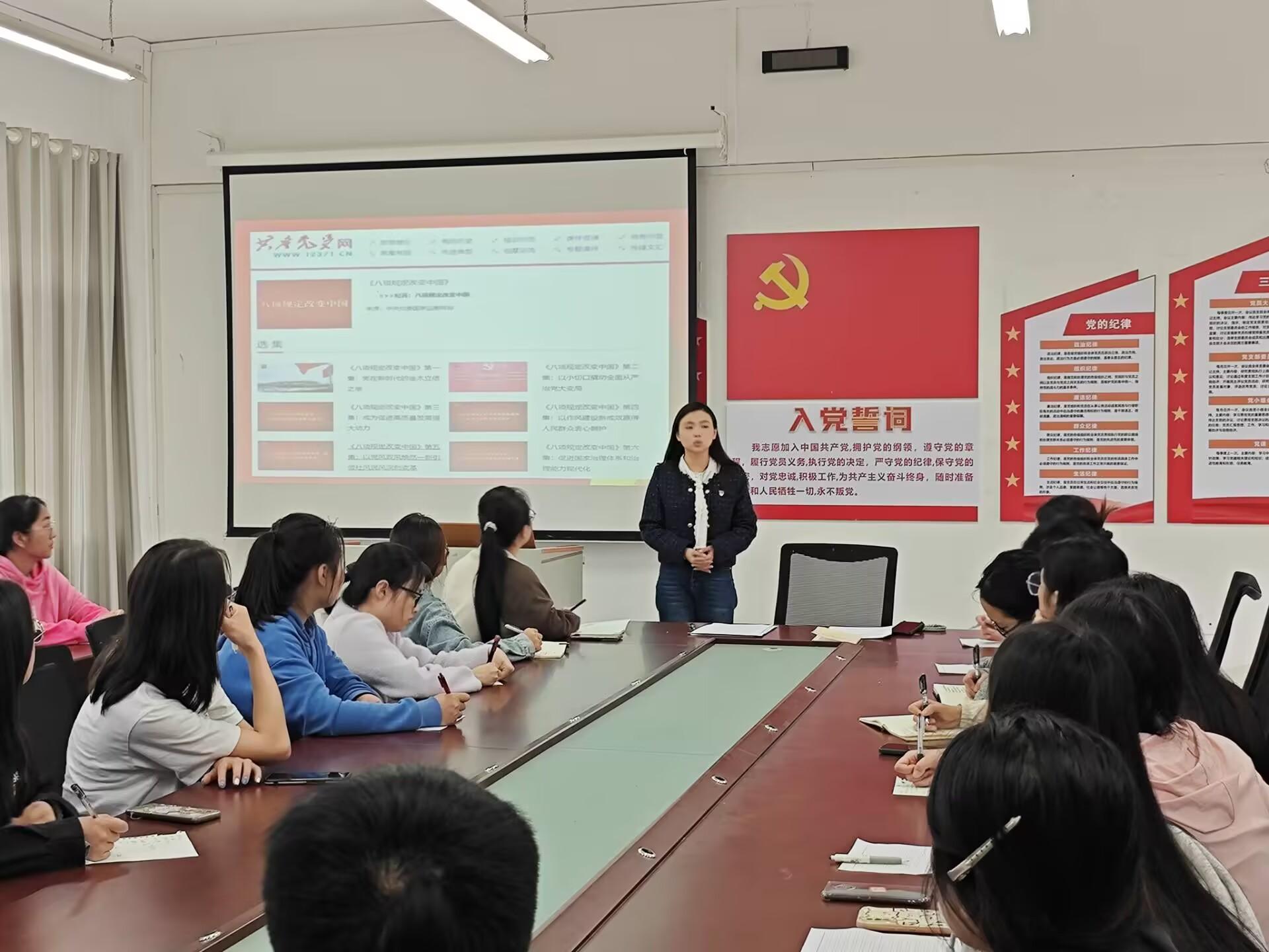 会议伊始,党支部书记王溯传达《中共美加墨世界杯官网委员会深入贯彻中央八项规定精神学习教育开门教育工作方案》,深化支部党员们对中央八项规定精神意识觉悟,进一步增强纪律意识和规矩意识,推进自我革命方面的坚实步伐。