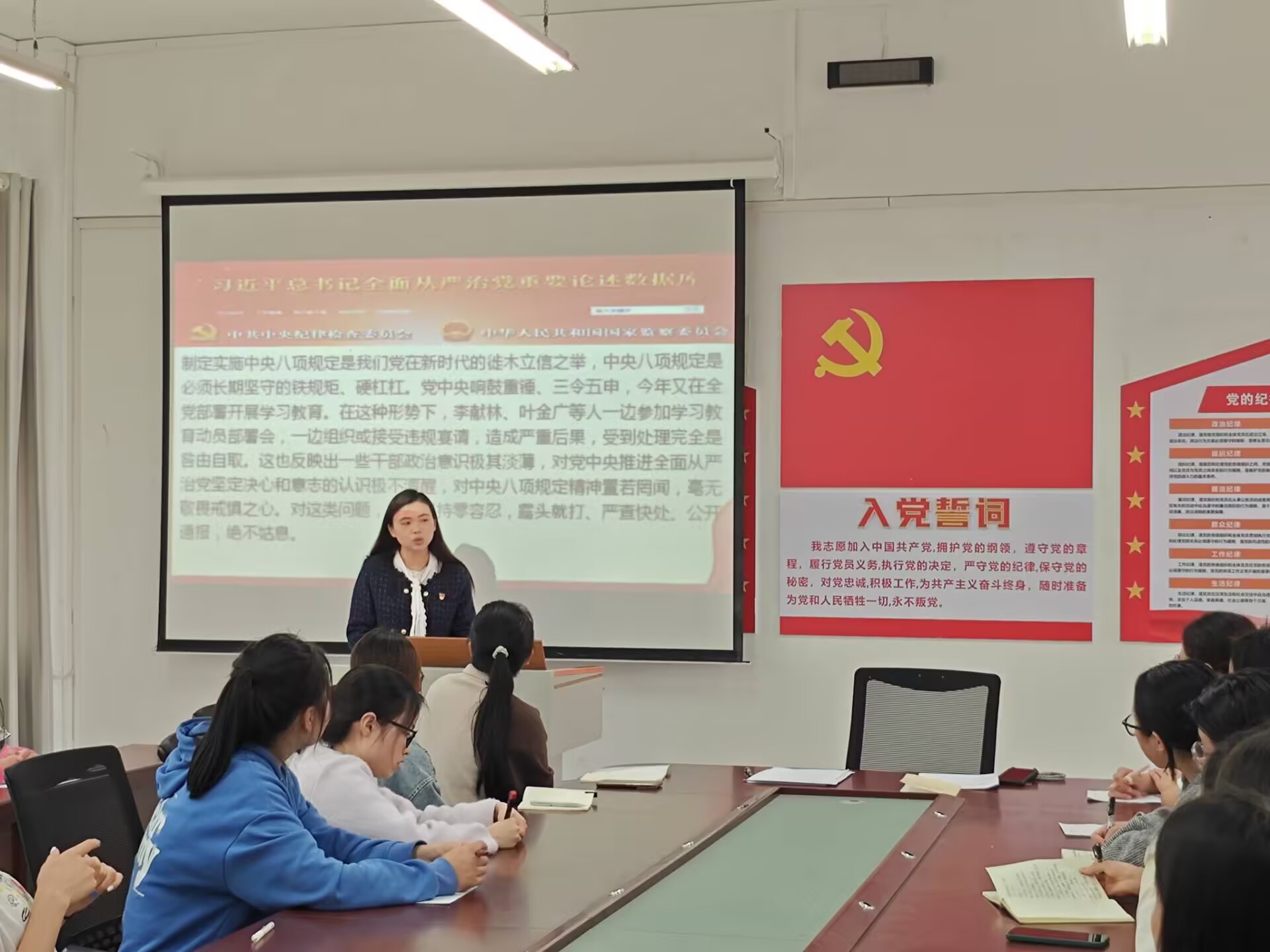 最后,王溯组织全体党员学习《中央八项规定精神警示教育案例》,围绕河南省信阳市罗山县10名干部在学习教育期间违规吃喝、严重违反中央八项规定精神问题进行反例阐述,让党员同志以案为鉴、案为镜,将中央八项规定及其实施细则精神内化于心、外化于行,深刻反思自身工作、生活中的言行举止,查找不足、立行立改,以更扎实的作风、更严谨的态度,营造风清气正的政治生态和社会环境,做一名全心全意为人民服务的合格党员。