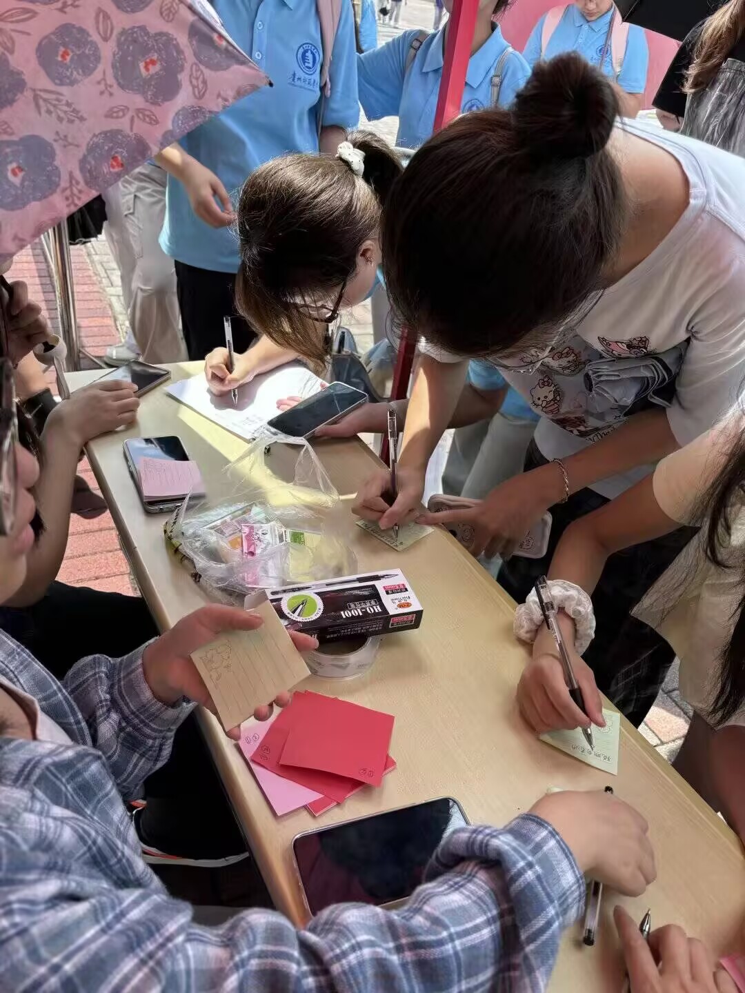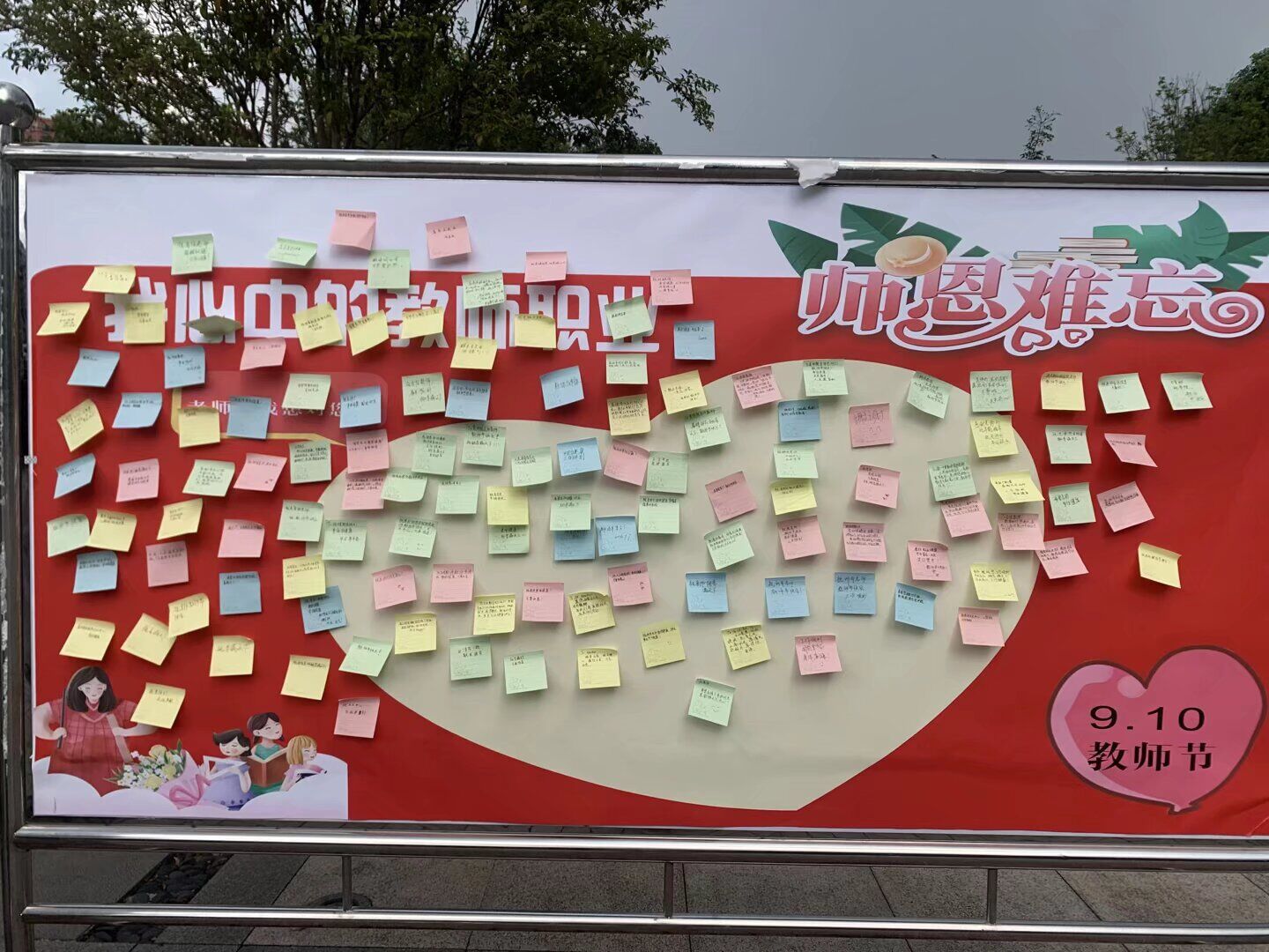 活动现场,通过现场制作教师节贺卡、在活动展板上撰写教师职业认知关键词,吸引了众多同学参与。同学们纷纷发挥创意,在贺卡上写下对老师的真挚祝福与感恩话语,有的还绘制了精美的图案,每一笔每一划都饱含着深情。在活动展板前,大家认真思考,写下诸如“敬业”“奉献”“启迪智慧”等教师职业认知关键词,表达对教师这一神圣职业的理解与敬意。