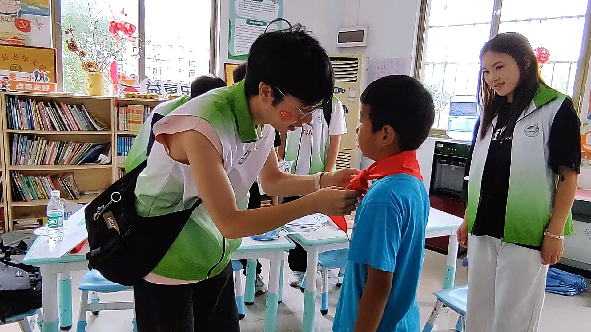 志愿者队长为小朋友佩戴红领巾
