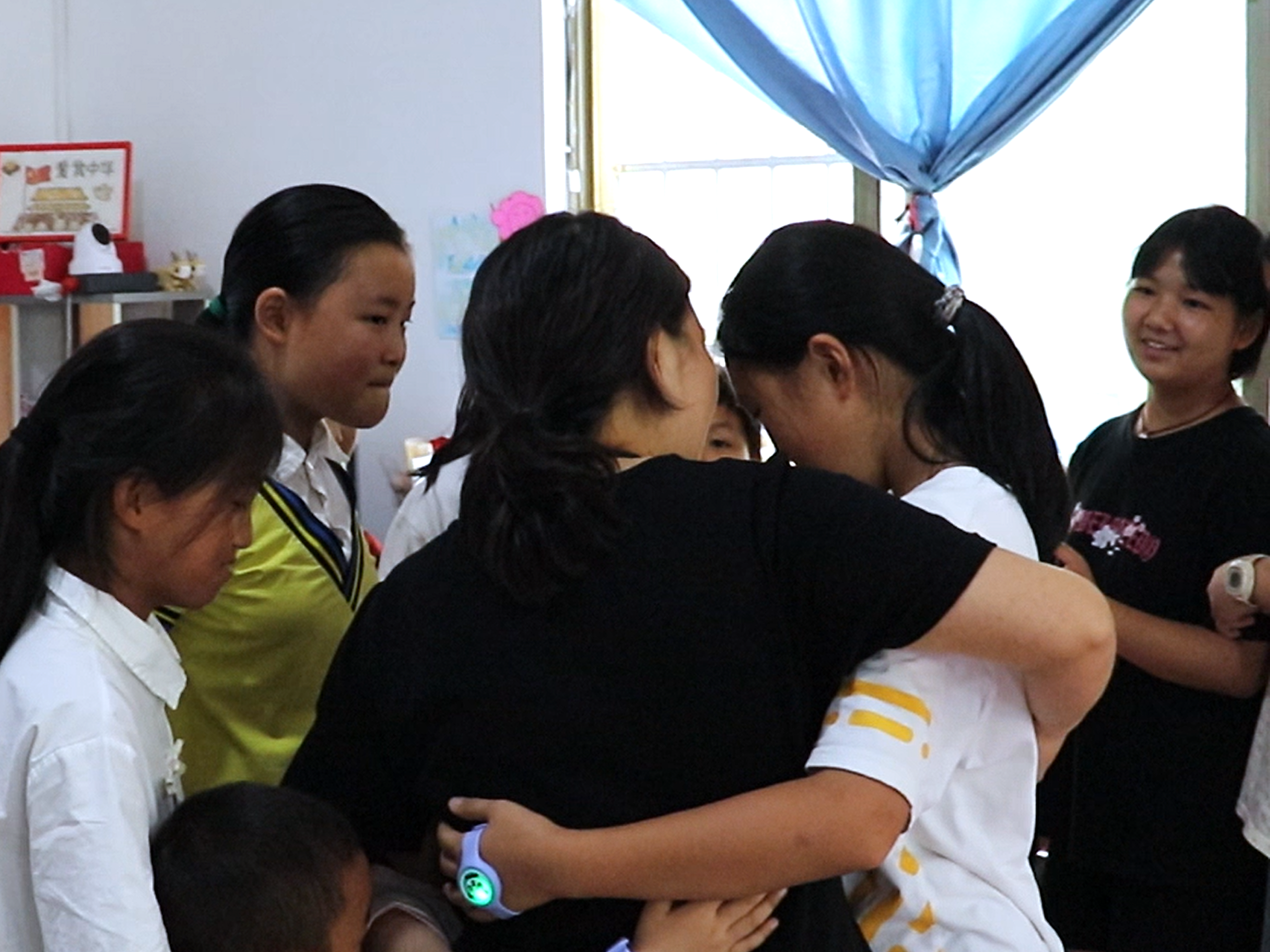 活动接近尾声时,孩子们围坐在一起,诉说着对儿童之家一直陪伴他们的杨焦老师的喜爱与感谢。“4岁瑞洁说“老师就像我们的妈妈,每天给我们做饭、辅导功课,还陪我们玩耍,我们好爱她!”“老师总是耐心地教我们知识,鼓励我们努力学习,我们长大以后也要像老师一样帮助别人。”“我想祝老师年年18,永远一支花,健康快乐”,孩子们用稚嫩的语言表达着对老师的敬爱,话语简单饱含深情,让在场的志愿者们深受感动。最后孩子们自发的走向讲台,拥抱在老师周围。一幅“承红色精神,感恩接力”的生动画面就此定格。祖国的花朵用实际行动践行了红色基因在新一代少年儿童心中成功播种,也见证了mjm世界杯官网志愿者们在支教路上的辛勤付出与收获。
