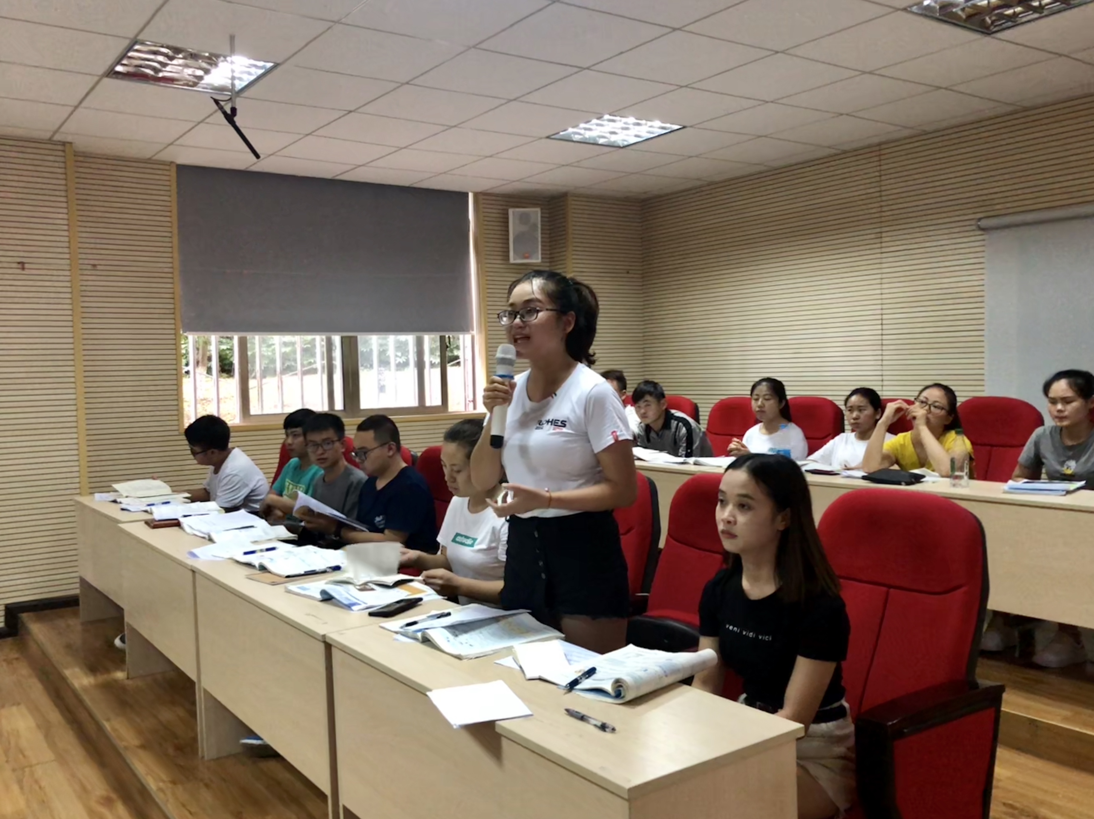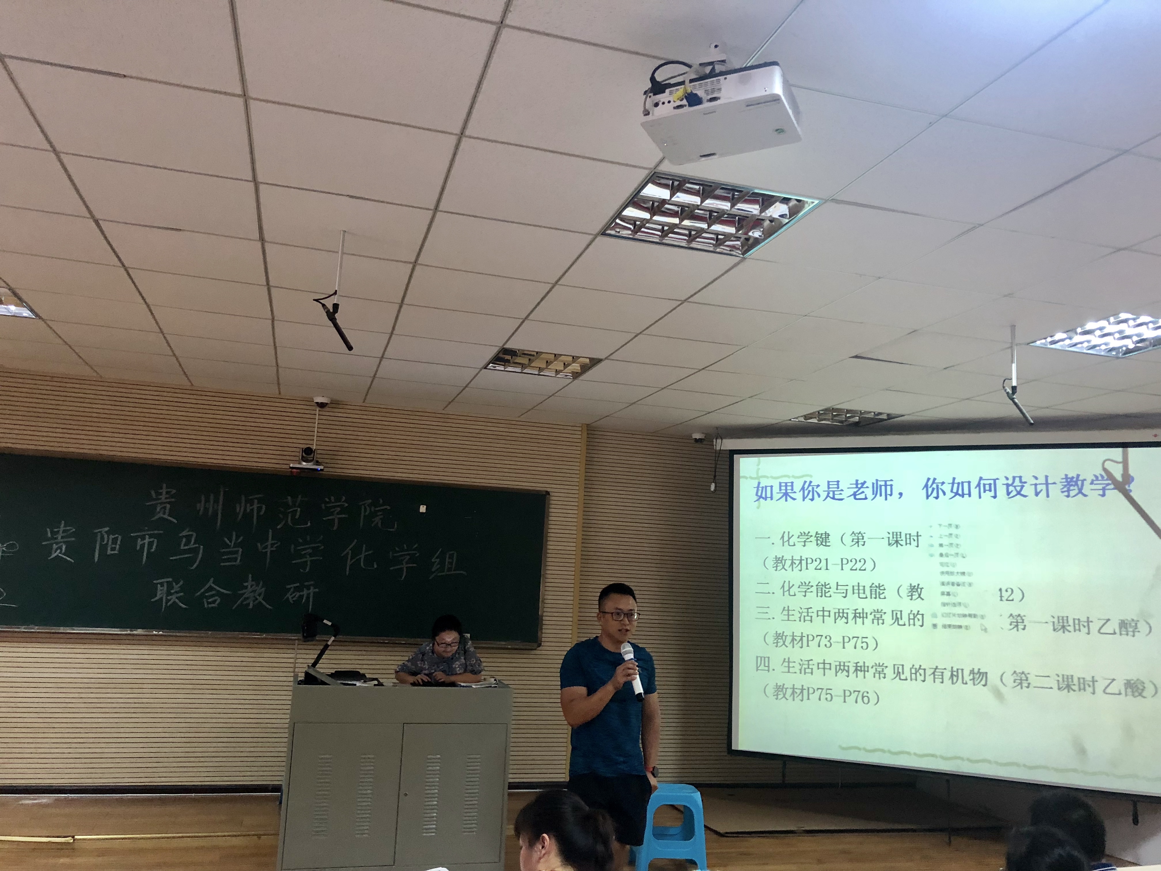 活动由乌当中学的贾珍珍老师以“化学键”、“化学与电能”和“生活中两种常见的有机物”三个课例展开,对该校正在实施的“1+1+1”塔式教育模式进行了介绍,并就如何构建高效课堂作了讲解。接着,贾老师抛出“如果你是老师,你如何设计教学?”这个问题,现场给出十分钟让同学们思考讨论,然后请了几名同学上台分别对不同课题的教学设计思路进行展示,乌当中学的余鸿燕、崔宁、黄昌鹏、邹清等几位老师分别对同学们的设计进行了点评与指导,参与活动师生展开了热烈的讨论,活动现场精彩纷呈,阵阵掌声把活动推向高潮。最后同学们就自己在教育实习试讲中遇到的问题向老师们求教,老师们做了富有针对性的解答。