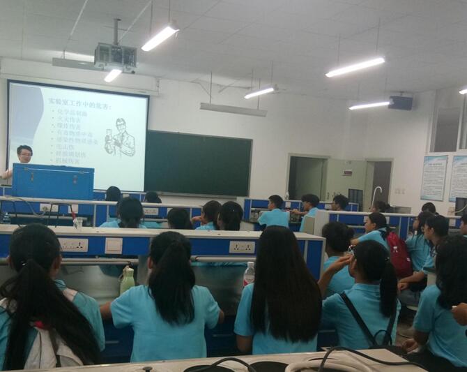 同学们首先参观了花卉栽培实践基地、植物生物技术平台、显微观察实验平台、分子生物学平台、标本室、细胞生物技术平台和生物基础实验室等。参观过程中,同学们热情高涨,不停的询问实验的相关问题,特别对大型仪器设备、动植物标本制作、酸奶制作和花卉栽培实践产生浓厚兴趣,很期待进入实验室学习。在参观过程中,实验员老师给新同学们讲解了实验室安全知识,从实验室规章制度、实验规范操作、实验室主要危险源及特点、实验室事故防范措施和应急处理及实验室的安全设施等方面开展。随后还进行了讨论,有同学说,大学的实验室和中学的实验室差别很大,有许多高大上的仪器设备,有惊喜,但也倍感实验安全的重要性。