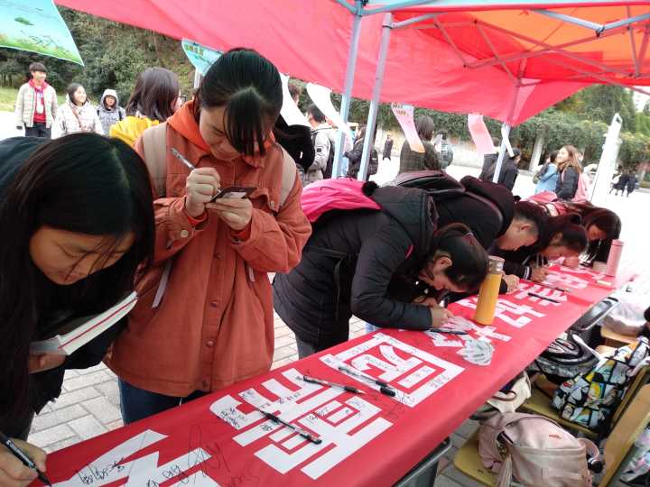 同学们现场签名为低碳活动助力