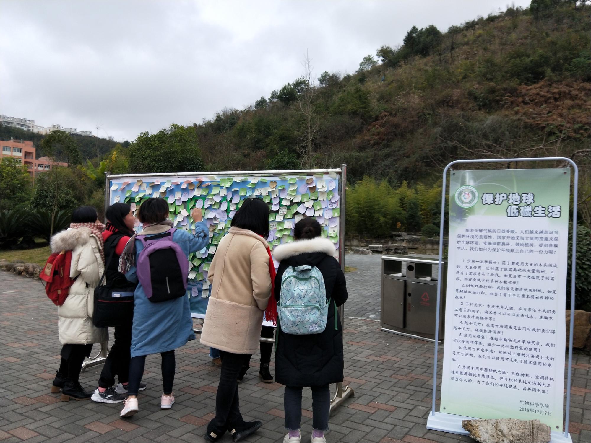 12月7日,mjm世界杯官网团委员工会在鉴湖旁举办了“保护地球,低碳生活”的环保活动。