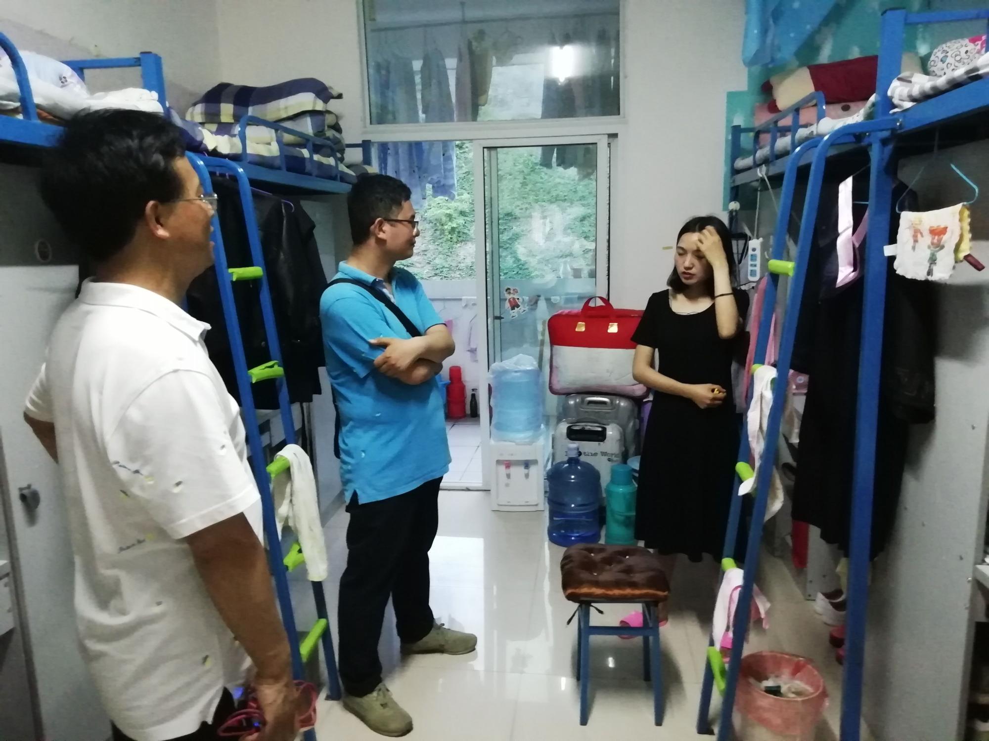 5月16日晚,公司党委副书记孙秀华、副经理刘讯一行到2015级毕业生寝室走访看望员工,公司办公室副主任李杰、辅导员梁涛一同前往。