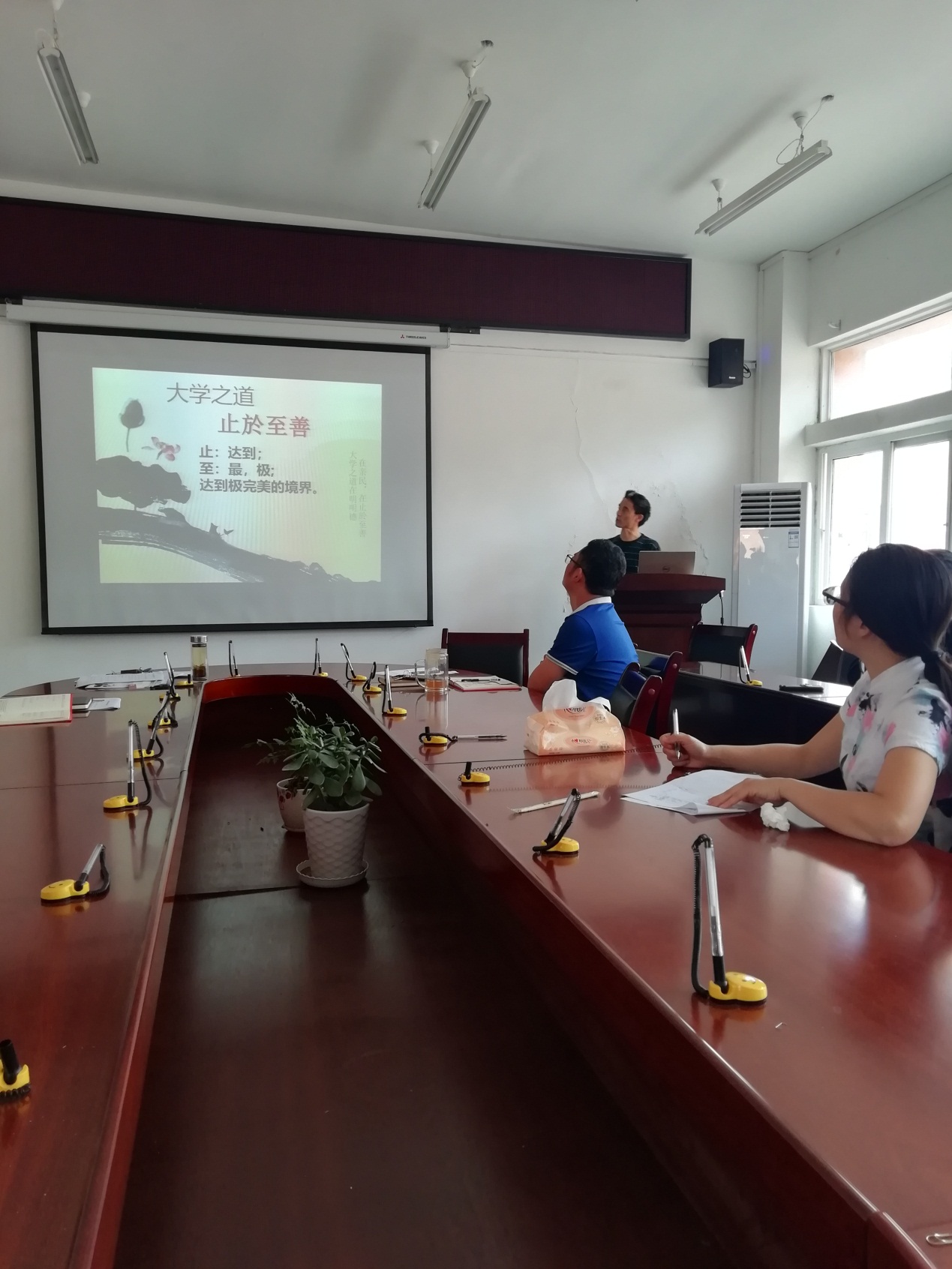 在党课学习环节,由党总支纪检委员、教师党支部纪检委员何勇同志讲廉政党课“大学之道,在明明德”。他强调“大学之道,在明明德”、“大学之道,止於至善”,作为一个党员,要发扬光明正大的品德,廉政廉洁,清白为人,清白从教,追求达到极完美的境界。紧接着,孙秀华开展以“不忘初心、牢记使命”为主题的党课教育。他认真解读习近平总书记在“不忘初心、牢记使命”主题教育工作会议上的重要讲话,强调“为中国人民谋幸福,为中华民族谋复兴”是中国共产党人的初心和使命,我们要牢牢把握守初心、担使命、找差距、抓落实的总要求,要力戒形式主义、官僚主义,按照习近平总书记对主题教育提出的明确要求,以有力举措,确保主题教育取得扎扎实实的成效。
