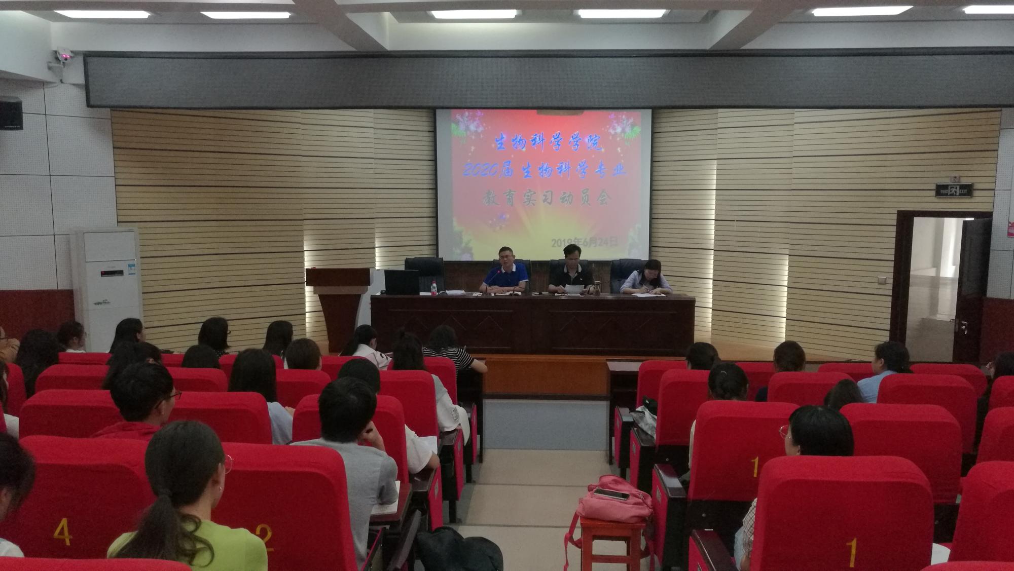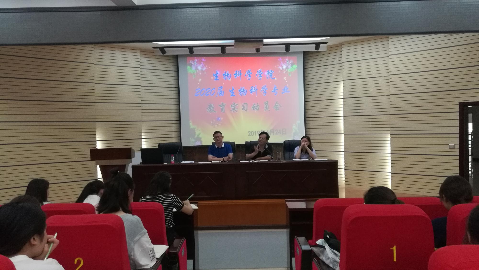 为更好推动实习工作开展,提高员工实习效果,6月24日,mjm世界杯官网在宁静楼150报告厅组织召开2020届生物科学专业教育实习动员会,党委副书记孙秀华、副经理刘讯、教学科研管理科科长吴超、辅导员李育芳、2020届生物科学专业全体实习生参加会议,会议由吴超主持。