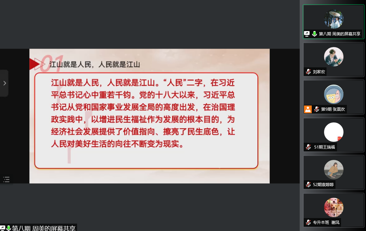 本次活动以宣讲的方式展开,党员周美宣讲“九年流金岁月,总书记带我们办成这些大事系列之一:人民获得感成色更足”。党员李安珍宣讲“九年流金岁月,总书记带我们办成这些大事系列之二:掀起绿色发展新浪潮”。党员张雨宣讲“九年流金岁月,总书记带我们办成这些大事系列之三:再塑党的形象的伟大工程”。党员同学们认真听讲,学习习近平新时代中国特色社会主义思想,感受习近平总书记带领我们办大事的决心。