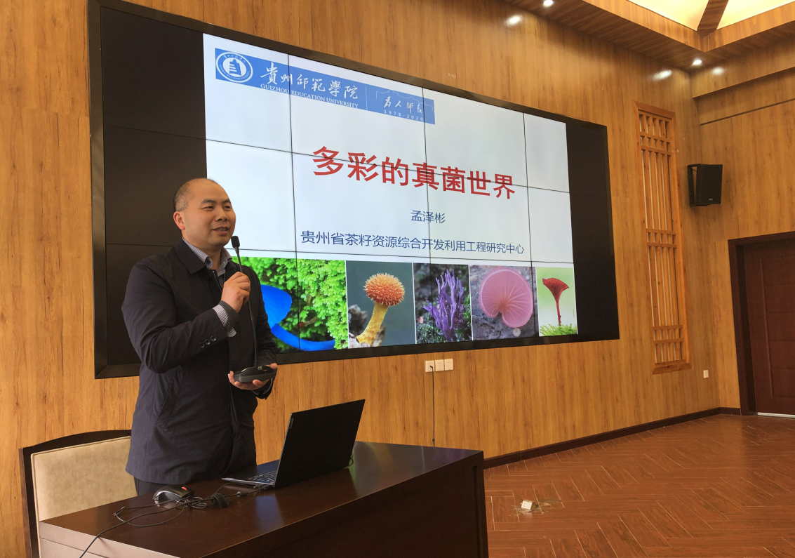 讲座开始,孟泽彬教授以生物界之最将同学们的思绪引入主题“真菌世界”。接着,从用途、特点、两个点结合自身经历带领员工们由浅入深的学习真菌的相关知识。紧接着,以贵州真菌研究相关的产业,如食用真菌的种植、酵母菌酿酒行业、药用真菌种植等,表明目前真菌研究的广阔前景。最后,孙秀华进行总结致谢,并希望同学们结合讲座内容联系实际,将所学到的专业知识运用到生活中,感兴趣的同学们可以朝真菌的方向进行学习研究。