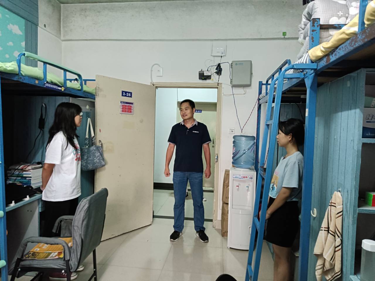 在走访慰问过程中,老师与同学们展开热烈交流,听他们分享暑假生活的趣事,认真询问他们暑假在校生活、学习方面遇到的问题和困难,以及大家期末考试、英语四六级考试情况,并鼓励大家在新的学期要刻苦学习、顽强拼搏。其中,老师们鼓励同学们平时多参加科研、文体等活动,夯实理论基础、开阔自己眼界、丰富知识。同时,重点查看了员工寝室安全隐患问题,包括是否存在违规电器等。