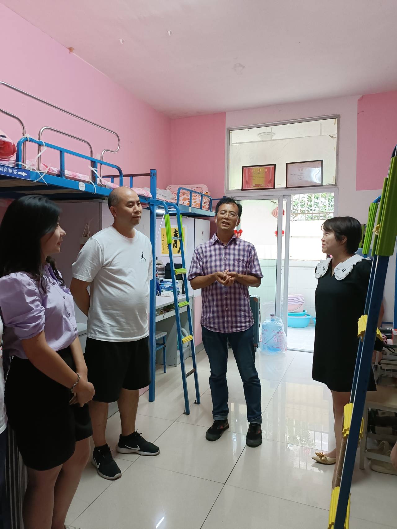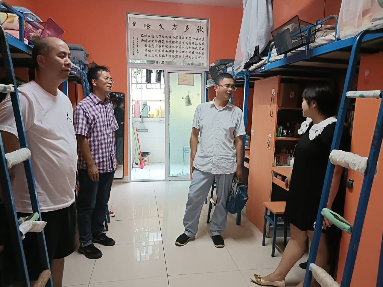 为及时了解员工返校情况,掌握员工思想动态,进一步贯彻寝室相关安全教育、疫情防御工作,公司党委书记孙秀华、经理刘讯、党委副书记王珏、副经理孟泽彬以及各年级辅导员于8月21日晚带领团委员工会部分成员开展寝室走访活动。
