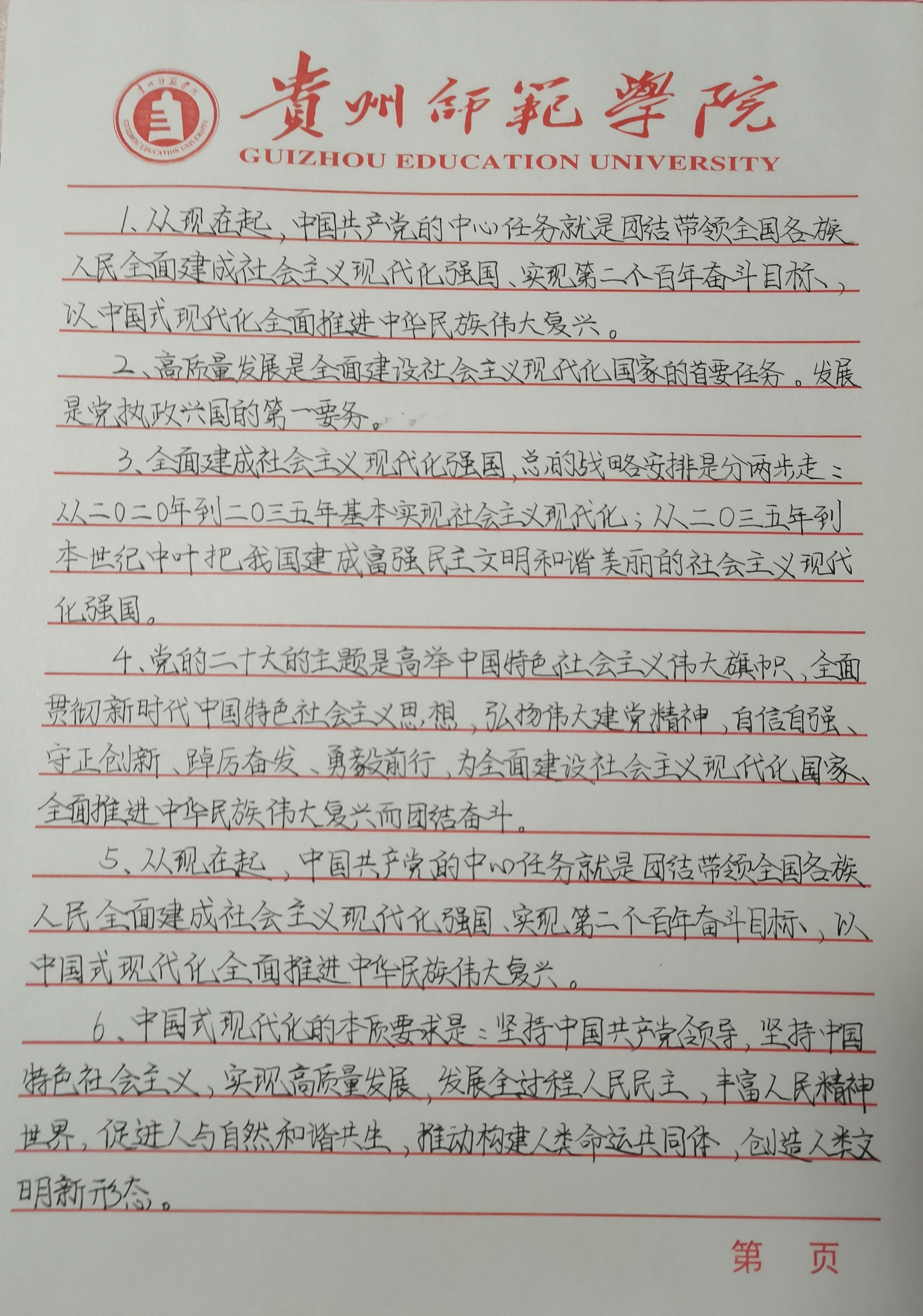 10月17日至10月26日,mjm世界杯官网生物科学专业员工党支部全体党员,入党积极分子开展了“摘抄二十大报告金句,悟报告精神”的主题学习活动。本次活动由2021级生物科学三班谢倩主持。