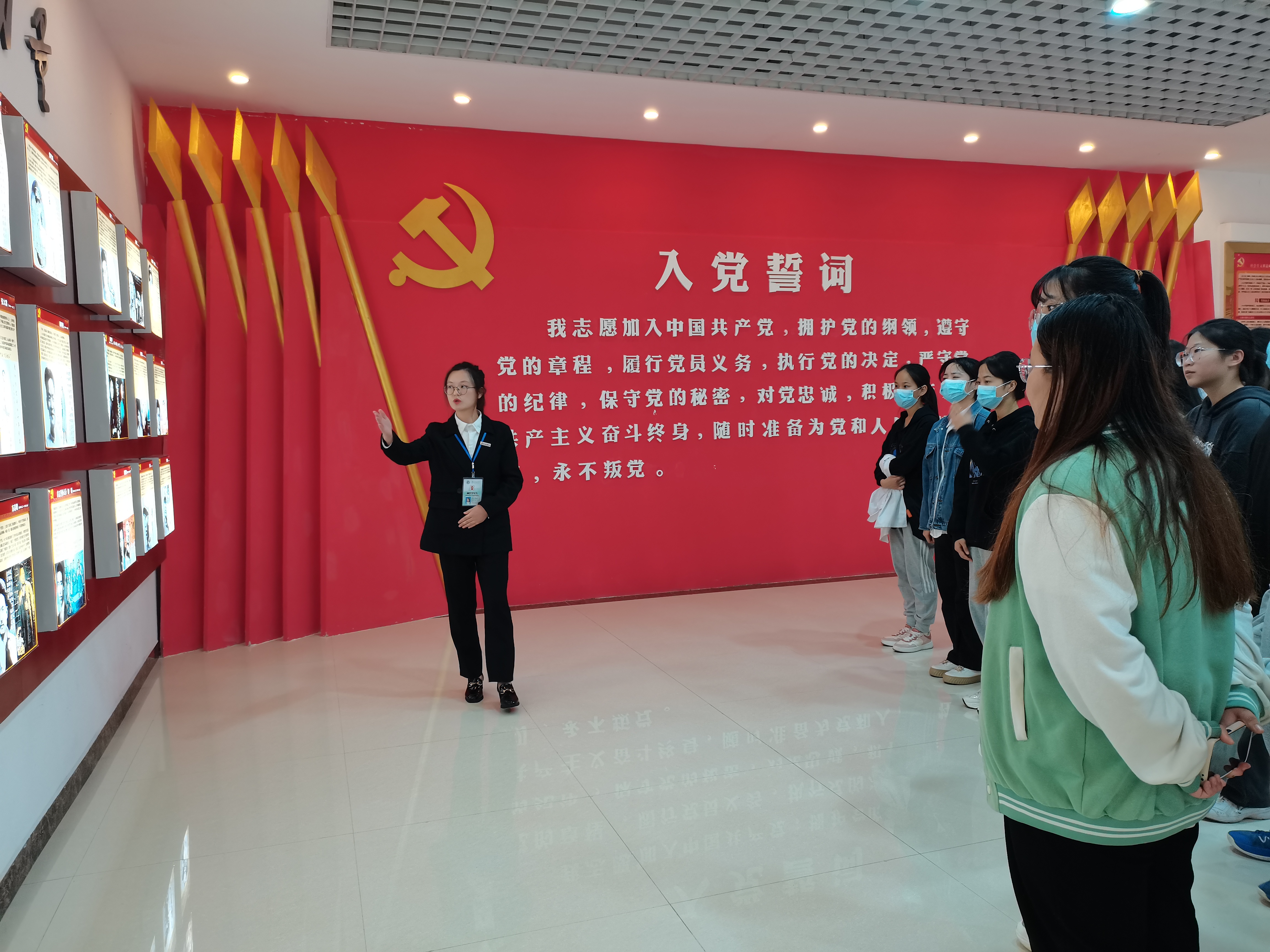党员教育基地讲解员首先向同学们介绍了“基层好党员”和“党员楷模”这两个板块。接着,讲解员带领同学们前往图书阅览区、“领导人的青春岁月”等板块进行参观,并讲述了中国共产党队伍的不断壮大以及党的光辉历史中的重大事件。然后前往参观学习优秀党员教师的精神,牢记“坚守教育报国初心,勇担立德树人使命”。最后参观反腐倡廉建设展区,讲解员为同学们讲述了十九大以来的反腐斗争,并结合党的二十大报告中内容:坚持以严的基调强化正风肃纪,坚决打赢反腐败斗争攻坚战持久战,向同学们讲解全面从严治党是党永葆生机活力、走好新的赶考之路的必由之路。接着以算盘引出党员要“算好人生的七笔账”结束了此次参观活动。