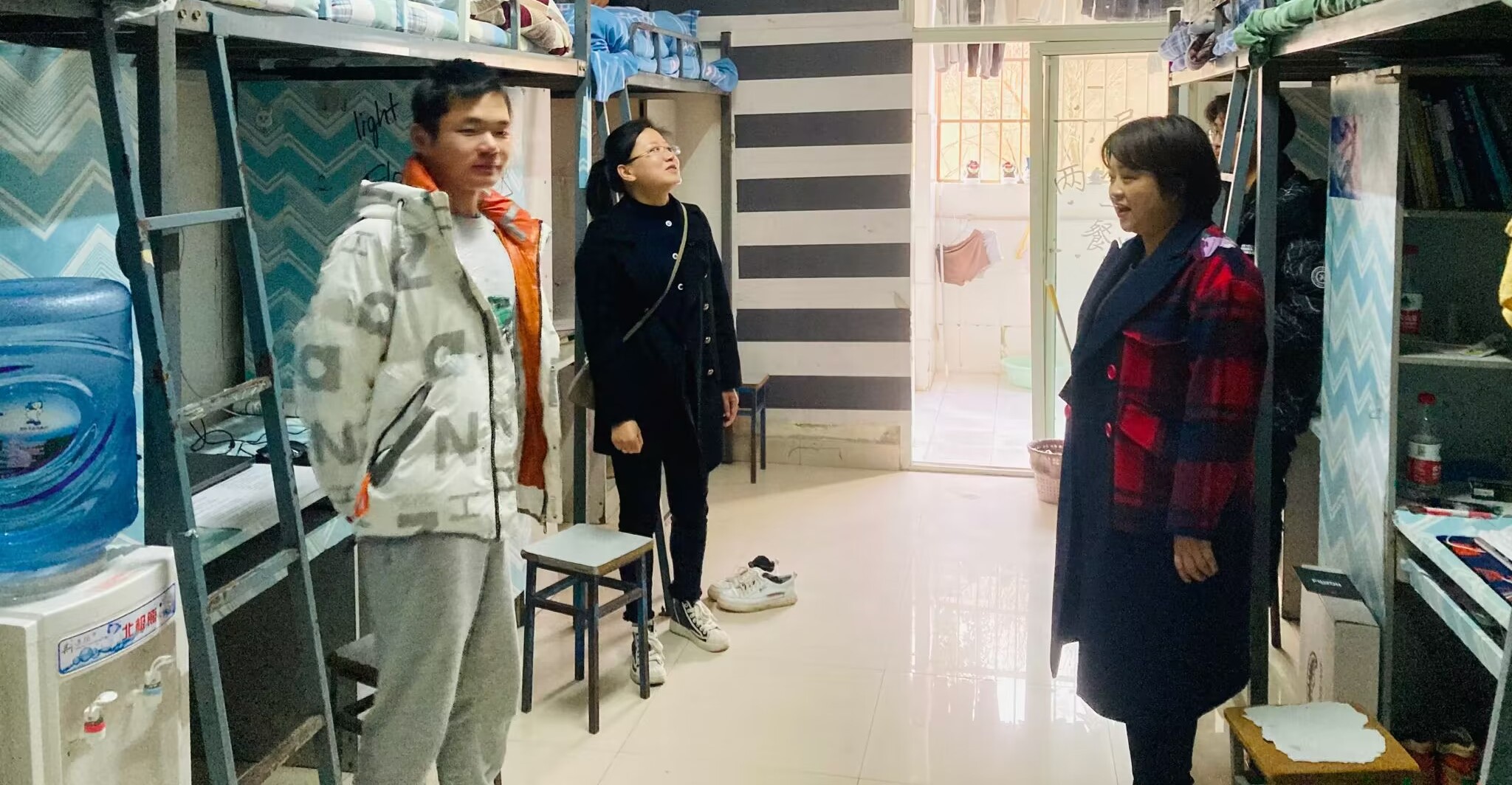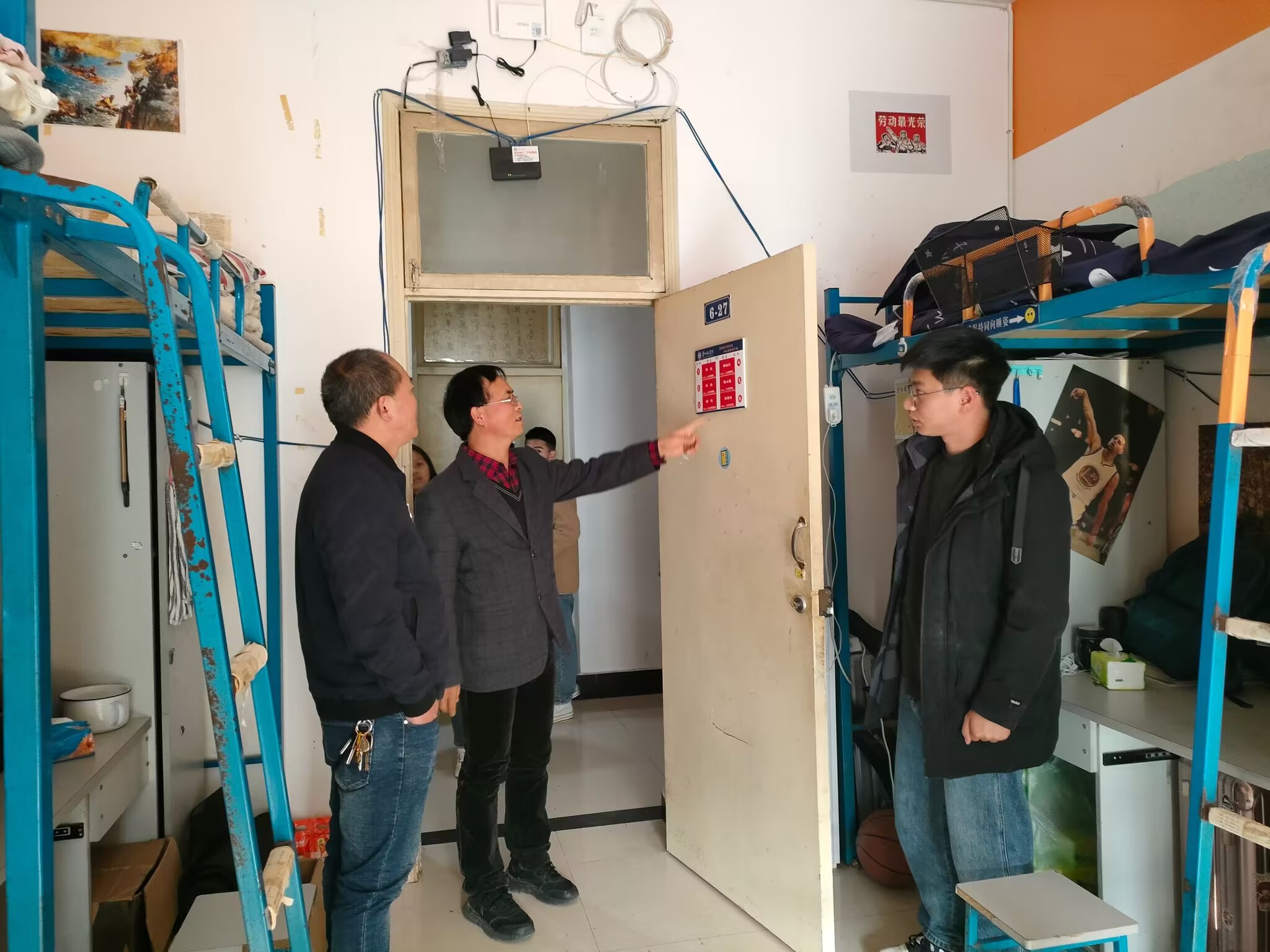 在走访慰问中,老师与同学们展开了热烈交流,各自分享假期生活趣事,并询问他们在学习方面遇到的困难,以及大家期末考试、英语四六级考试情况。之后,鼓励大家在新的学期要刻苦学习、精进专业知识,做好未来规划。同时,重点查看了员工寝室安全隐患问题,包括是否存在违规电器等。此外,老师对每个寝室未到人员进行了相关询问,检查完寝室卫生情况,最后均表示寝室总体整洁有序,希望大家能够继续保持。