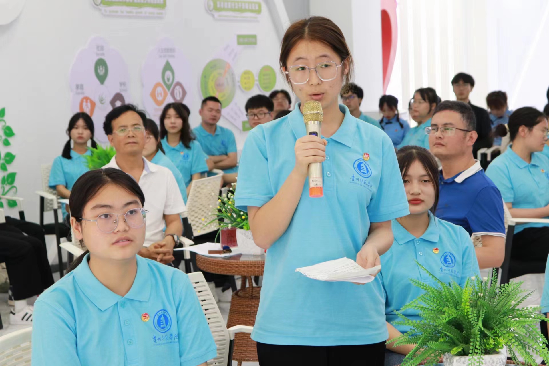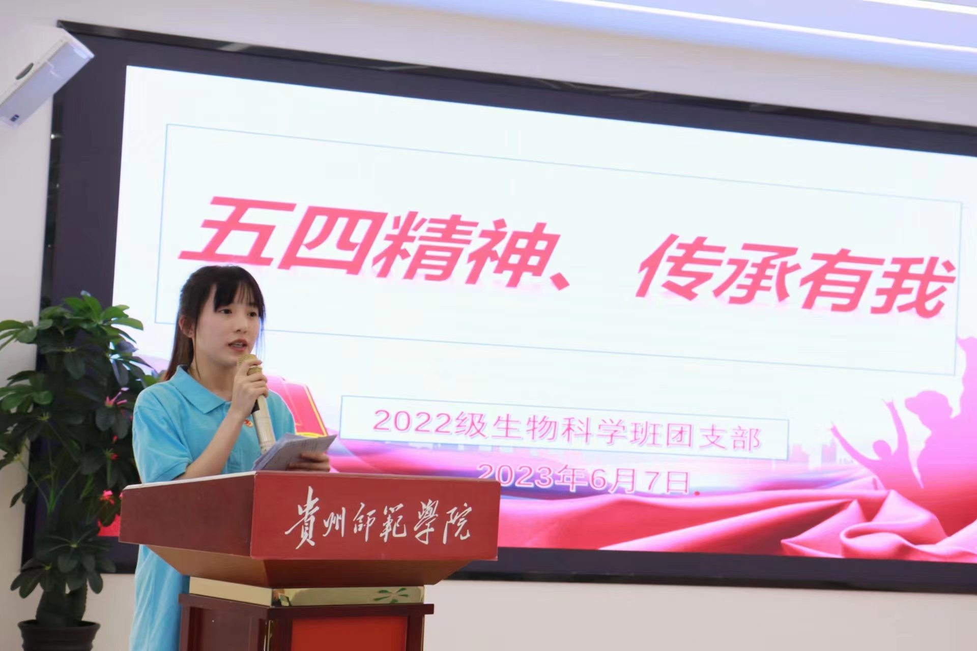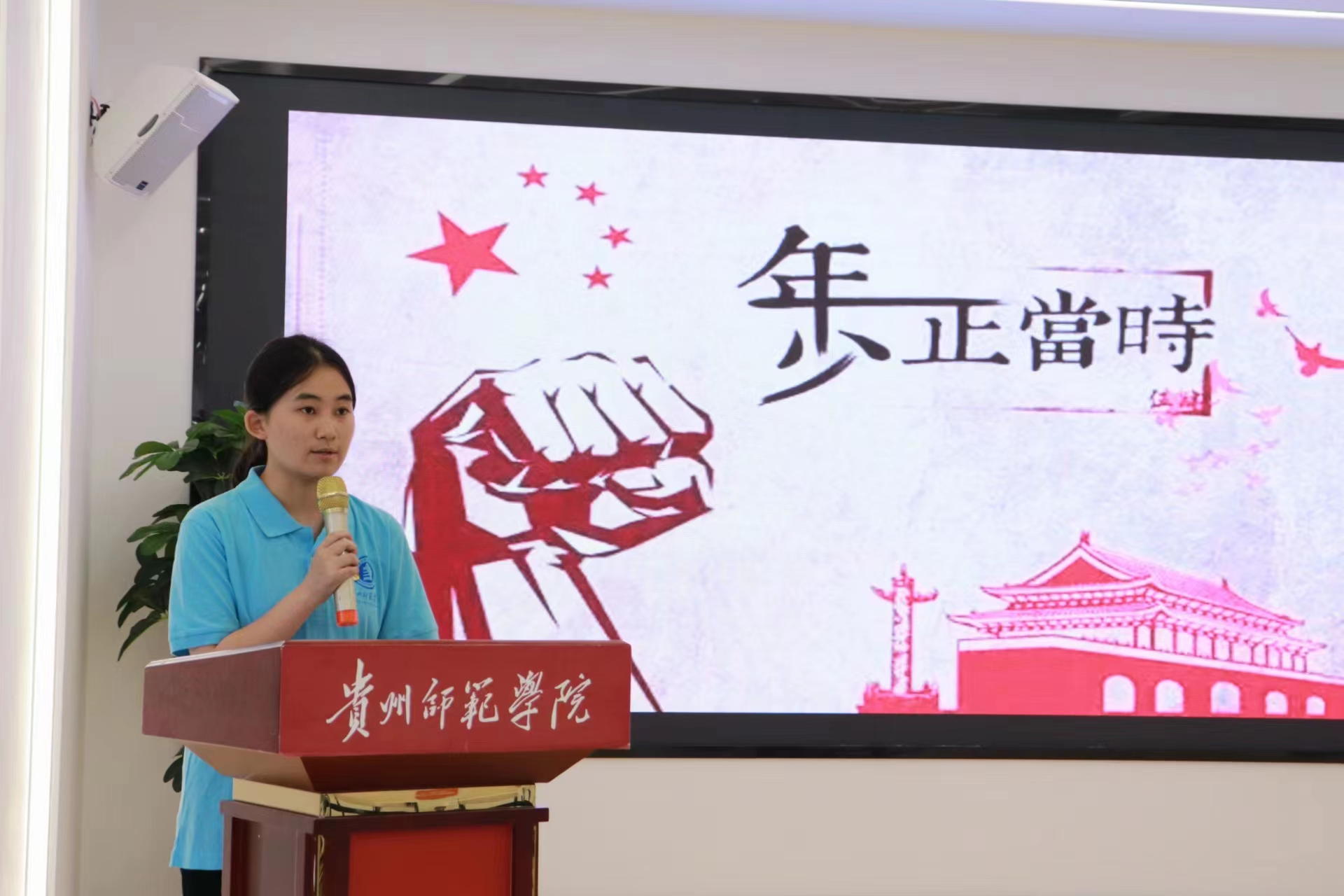 活动开始,团员代表用慷慨激昂的朗诵《青春中国》回顾了五四历史,表达了传承决心。退伍军人李鑫和优师计划员工代表谢兴倩结合自身经历讲述了作为新时代的青年,应该扛起时代重任,到祖国最需要的地方去,以青春之我,奋斗之我,在党和人民最需要的地方绽放绚丽之花。参与活动的同学也分享自己的感悟并发出有力的青春宣言。