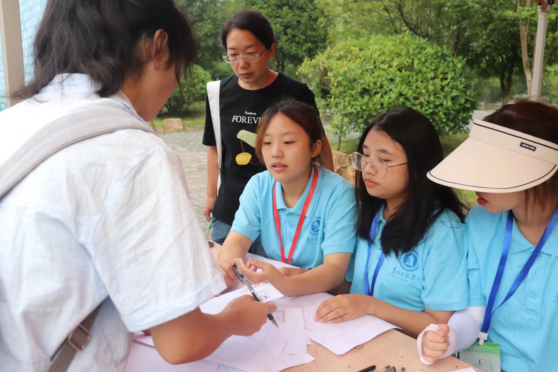 此次迎新工作中,新生接待场地按照功能共分为三个区域,分别为校门口接待引导区、报到登记区和宿舍接待区。早上七点钟,全体迎新志愿者已热情等候。从校门口举着院牌接应,接过家长手中的行李,在报到处为新生办理手续、答疑解惑,搬运行李到新生宿舍,整个过程,志愿者们个个面带微笑、热情似火,在报到处与宿舍区之间不断往返为迎新工作保驾护航。