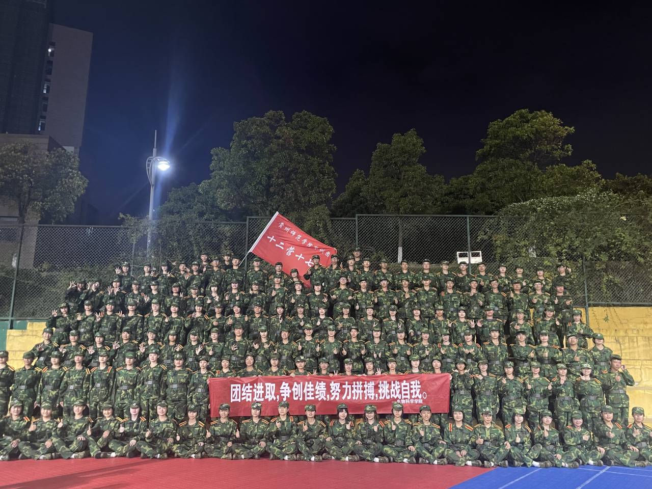 慰问活动最后,公司团委员工会部分成员为参训员工分发慰问品,大家伴着训练场上的灯光合影留念,至此,本次活动圆满结束。短暂的半个小时却实实在在地为同学们送去了温暖关怀,为后续的军训生活提供了不竭的精神动力。