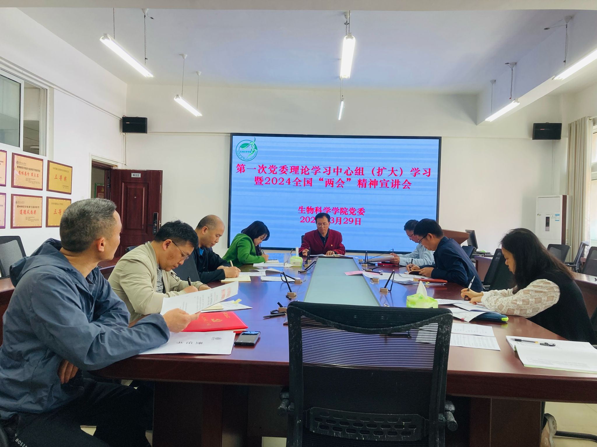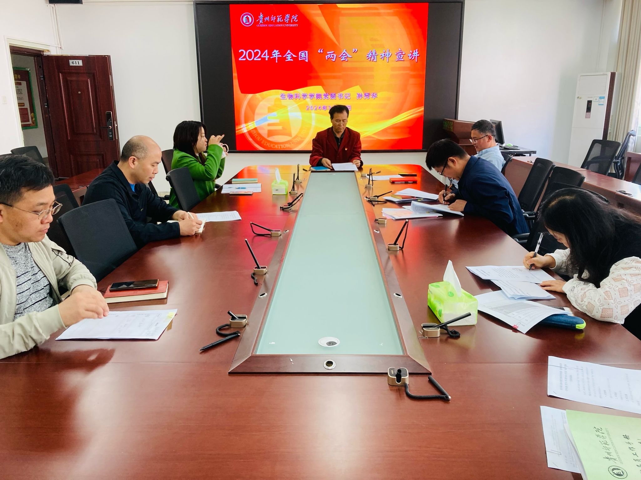 会议第一阶段由孙秀华书记进行了全国两会精神的宣讲,强调了两会精神在新时代背景下的重要意义,特别是对高等教育和科学研究领域的指导作用。
