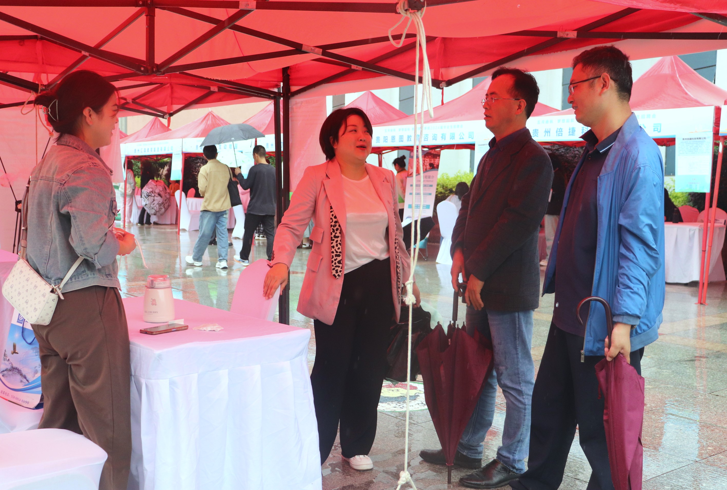 上午十点,招聘会现场气氛热烈,人头攒动。公司领导高度重视本次招聘会,党委书记孙秀华、经理刘讯、党委副书记王珏深入招聘会现场,与用人单位进行细致沟通,了解其招聘岗位需求,并与现场毕业生亲切交流,详细询问同学们的求职情况及求职意愿,并给予悉心指导和耐心解答。本次招聘会吸引了贵州威门药业股份有限公司、贵州吉创生物技术有限公司、贵州发财印务集团有限公司等30多家用人单位。招聘会现场,各招聘展位前,前来咨询的员工络绎不绝,同时,各招聘单位也对岗位细则、学历要求、招聘人数等一一进行了详细说明。