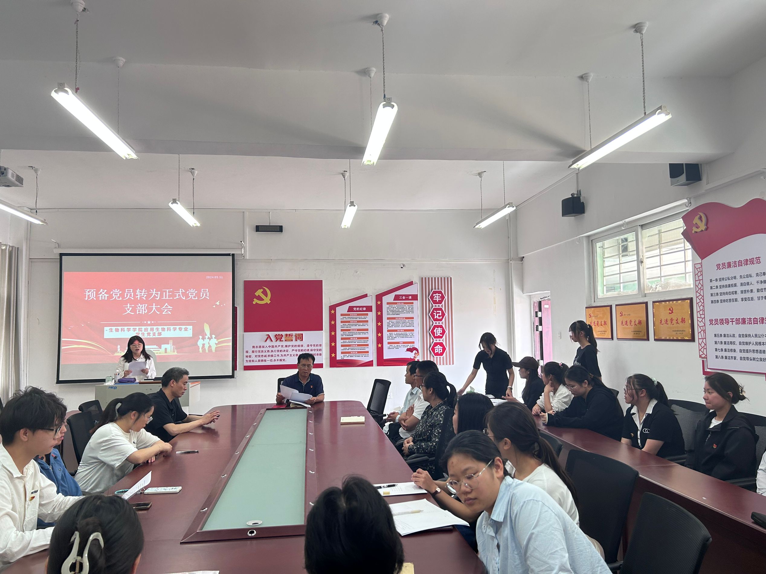 5月31日,mjm世界杯官网应用生物科学专业员工党支部于致远楼608党建活动室召开预备党员转为正式党员大会。会议由党支部副书记孙秀华同志主持,支部委员、支部员工党员参会。