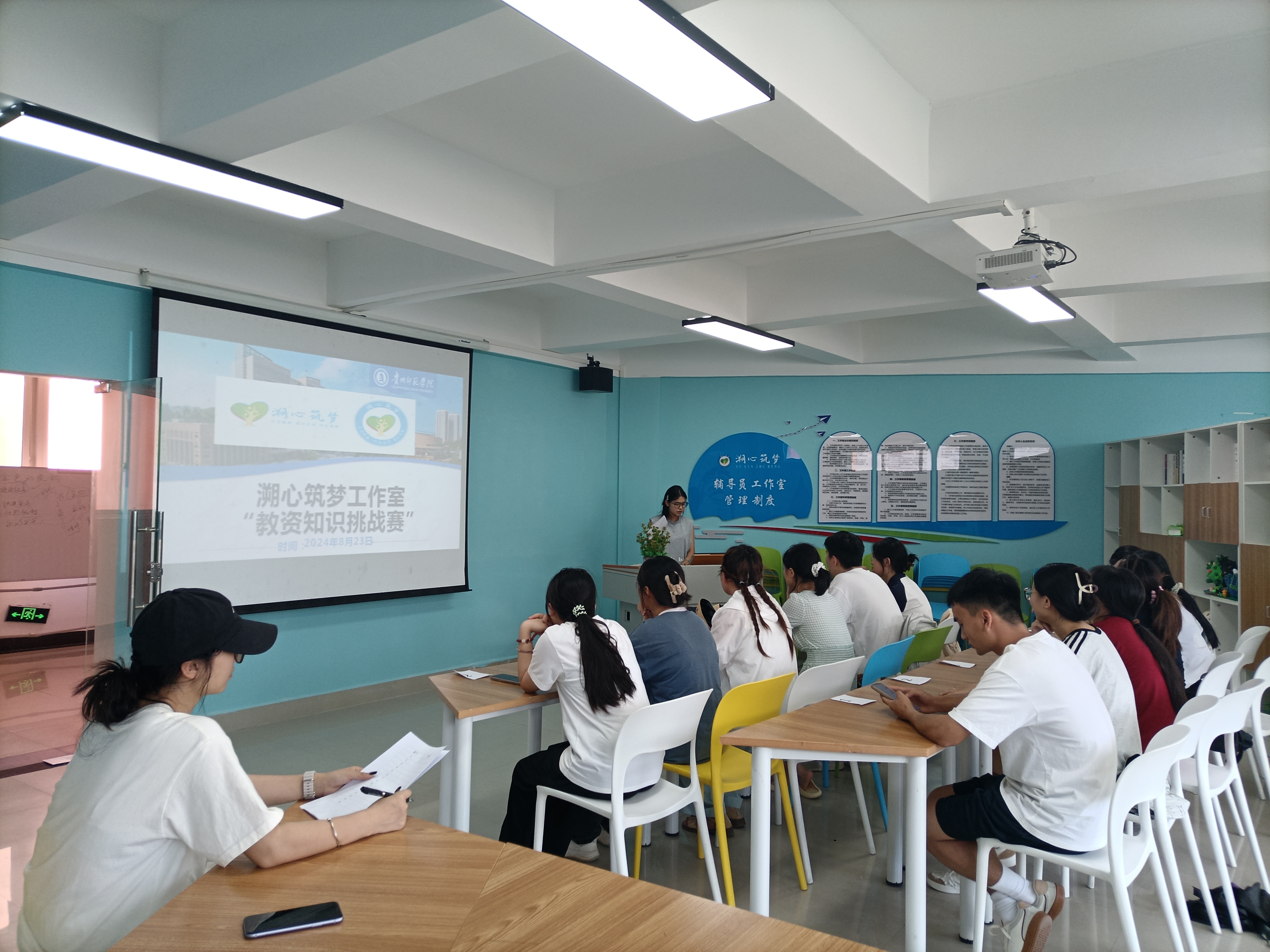 为了帮助老员工拓展自身知识面,帮助师范生应对综合知识考试,提升个人专业素养,8月23日,溯心筑梦辅导员工作室开展了教团队格证教育综合知识挑战赛。共30名同学,5支参赛队伍参加。