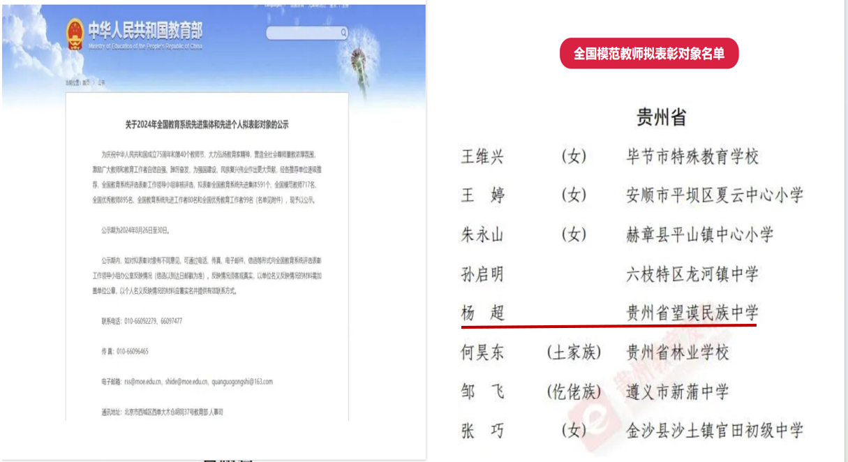 1.杨超全国模范教师拟表彰公示
