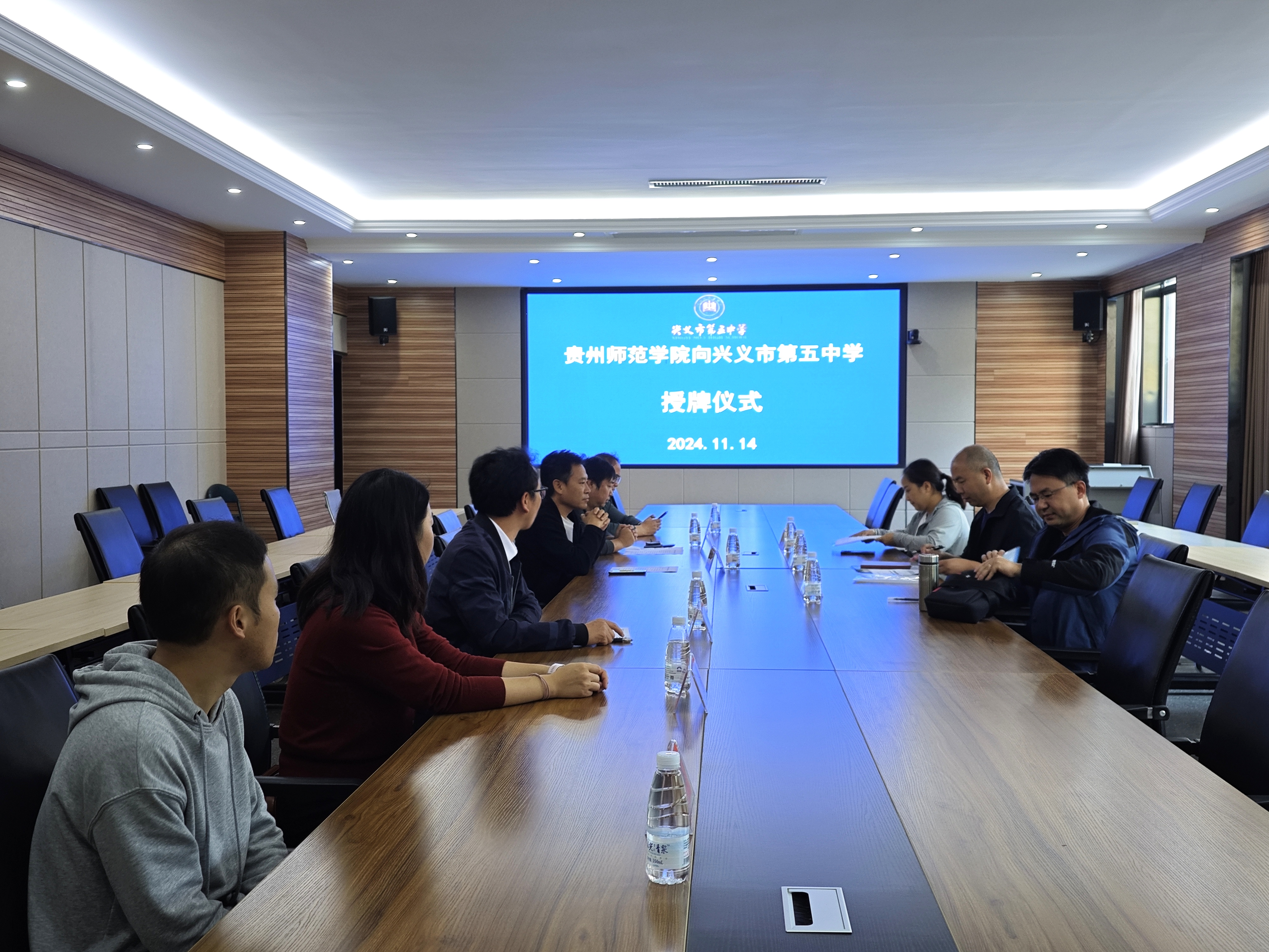 14日上午,在兴义市第五中学,公司教师与集团党委书记曾付康、副董事长苏显彬、教务处主任周义超、教务处副主任罗建兴、教师张亚盟、国培学员秦海进行交流座谈。苏显彬介绍了该校的发展历史、发展情况,曾在公司参加国培的秦海老师汇报了回校后的发展情况。孟泽彬介绍了贵州师范公司和生科院的情况,兴义五中有很多优秀员工考进美加墨世界杯官网并且发展良好。双方对两校深化合作都给予期望。随后双方签订了优质生源基地协议,并进行了挂牌。