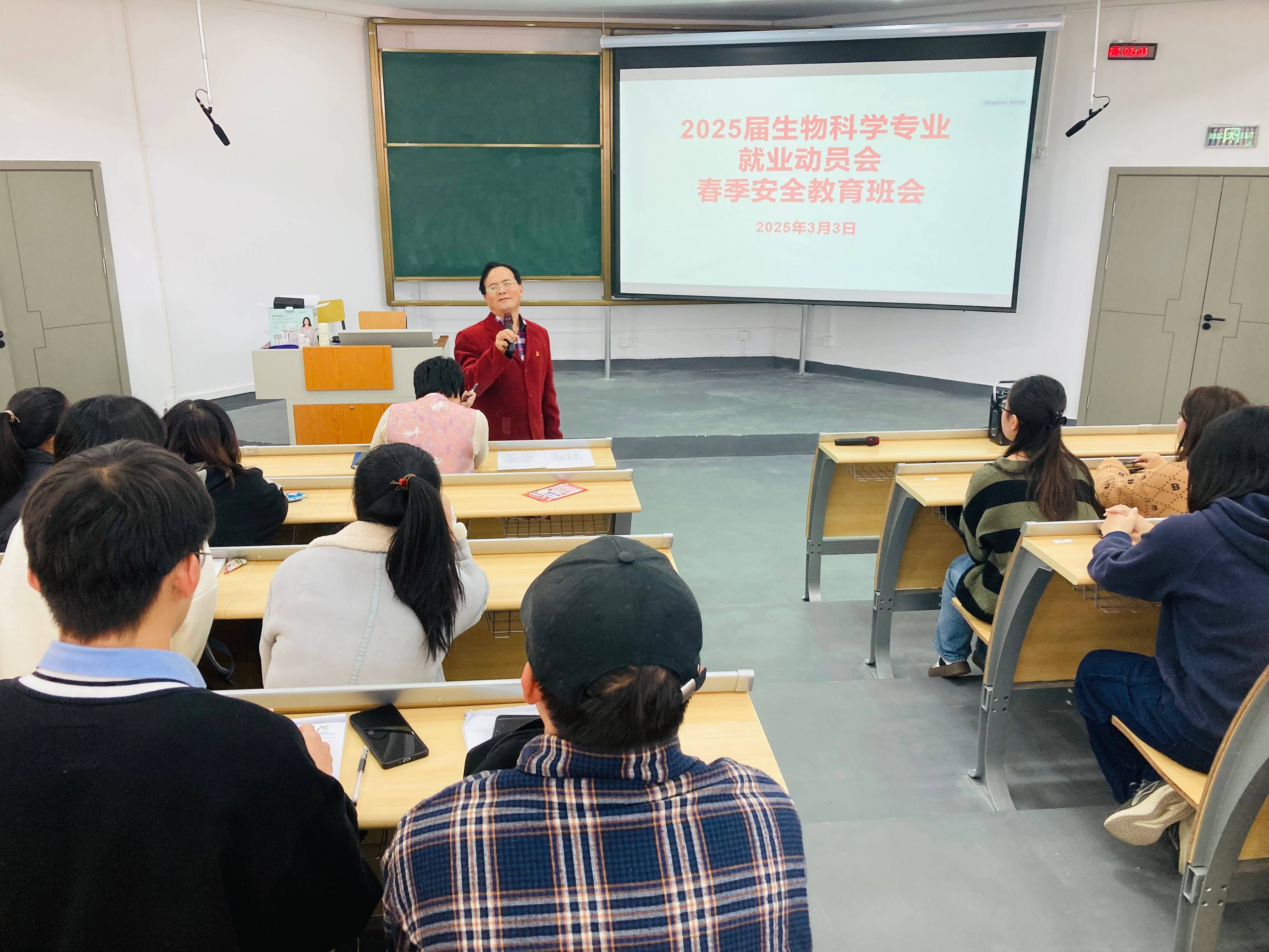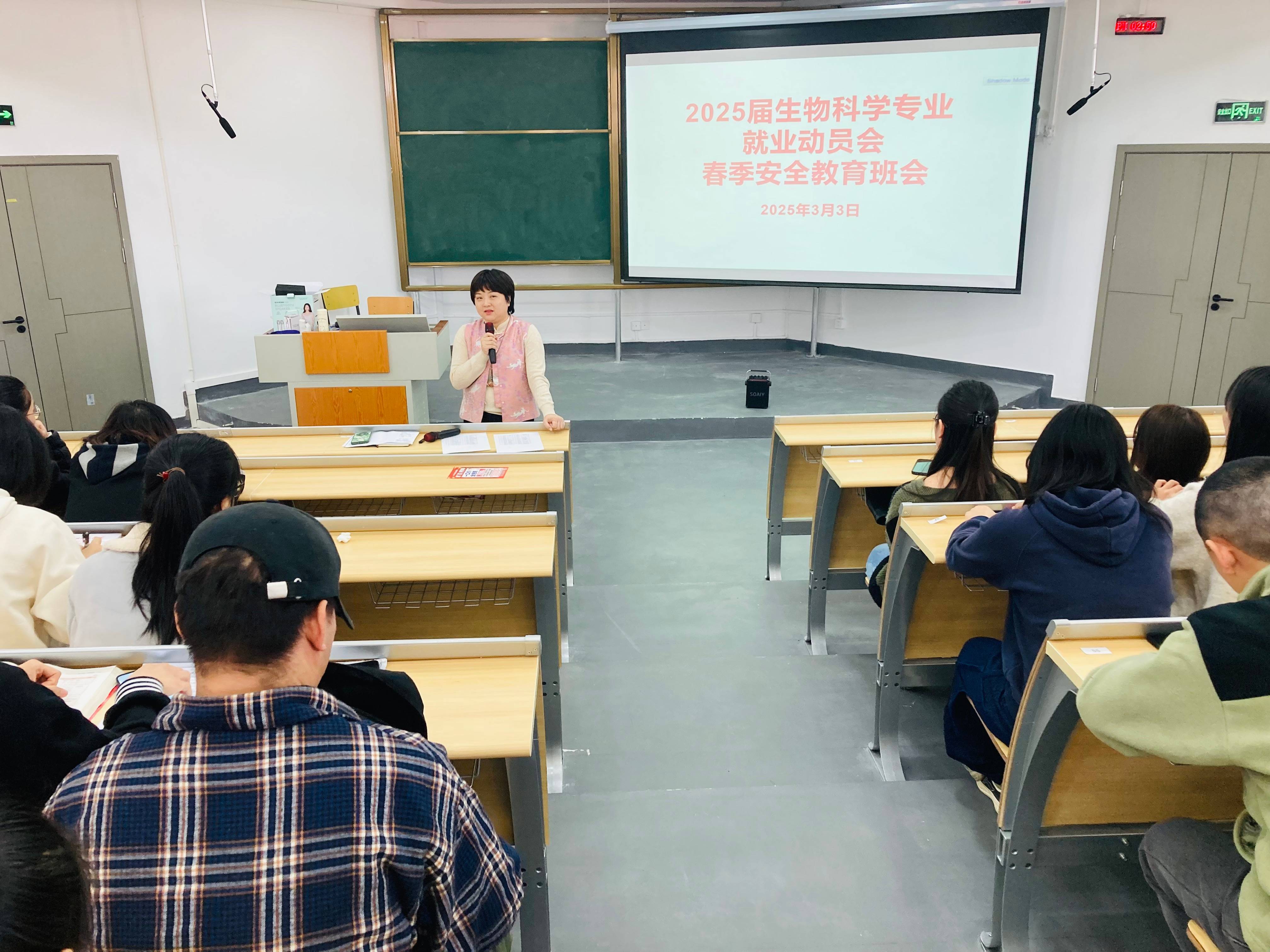 为引导毕业生认清就业形势,有效提升就业能力,准确把握就业机会,明确现阶段重点任务,大力推进就业育人,3月1日下午,公司党委书记孙秀华、经理任翠娟、副书记王珏在宁静楼537阶梯教室召开生物科学专业2024届毕业生就业动员会,25届生物科学毕业班辅导员梁涛主持会议。2024届生物科学专业未就业毕业生130余人参加。