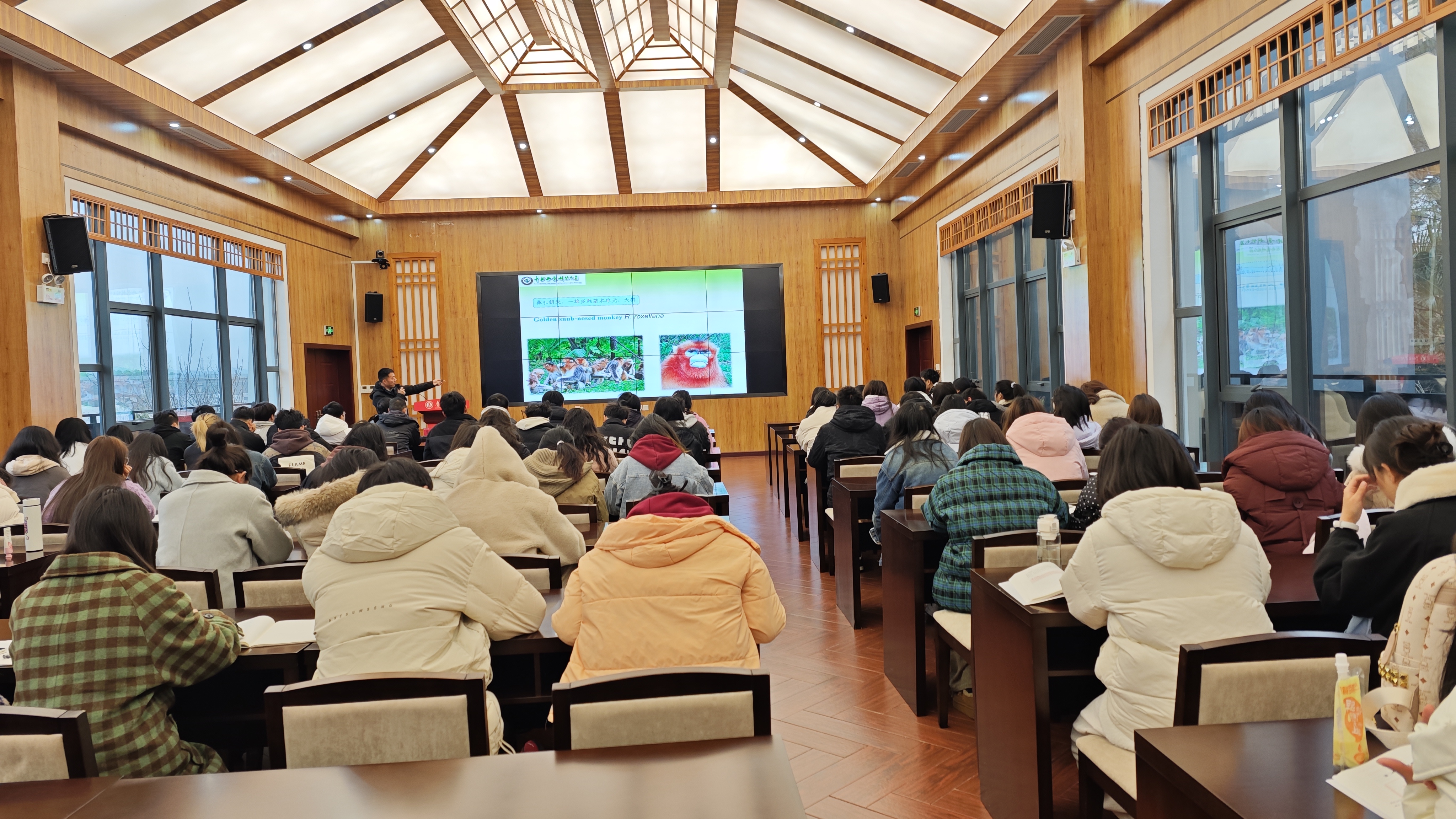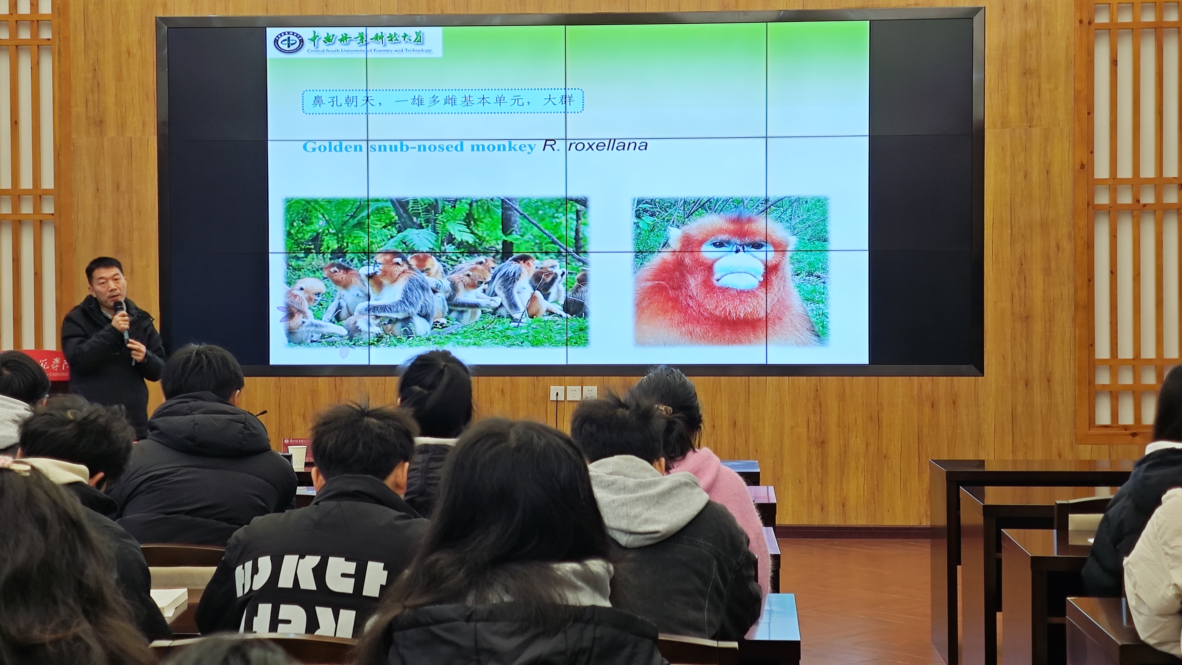 3月7日,美加墨世界杯官网印山书院山骨讲堂迎来湖南省芙蓉学者特聘教授,中南林业科技大学二级教授,博士生导师向左甫教授的学术讲座——《金丝猴繁殖适应策略》,将金丝猴的“家庭”与“社会”生动的呈现在mjm世界杯官网师生眼前。讲座由mjm世界杯官网副经理钱长江主持。mjm世界杯官网经理任翠娟、副经理孟泽彬、部分青年教师、野生动物与自然保护管理专业、生物科学专业和应用生物科学专业的员工参加讲座。