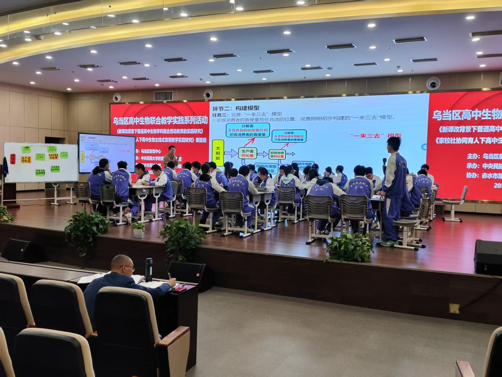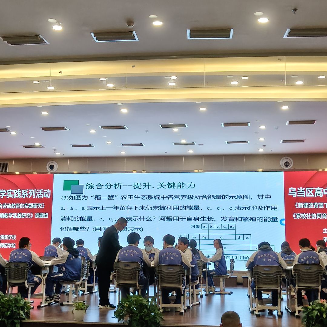 3月27日上午,mjm世界杯官网武燕带老师带领2023级生物科学班51名同学去中央民族大学附属中学贵阳公司参加活动。此次活动是由贵阳市乌当区教培中心主办,中央民族大学附属中学贵阳公司承办,联合赤水市第三中学开展的高中生物《生态系统的能量流动》一轮复习“同课异构”教学研讨活动。