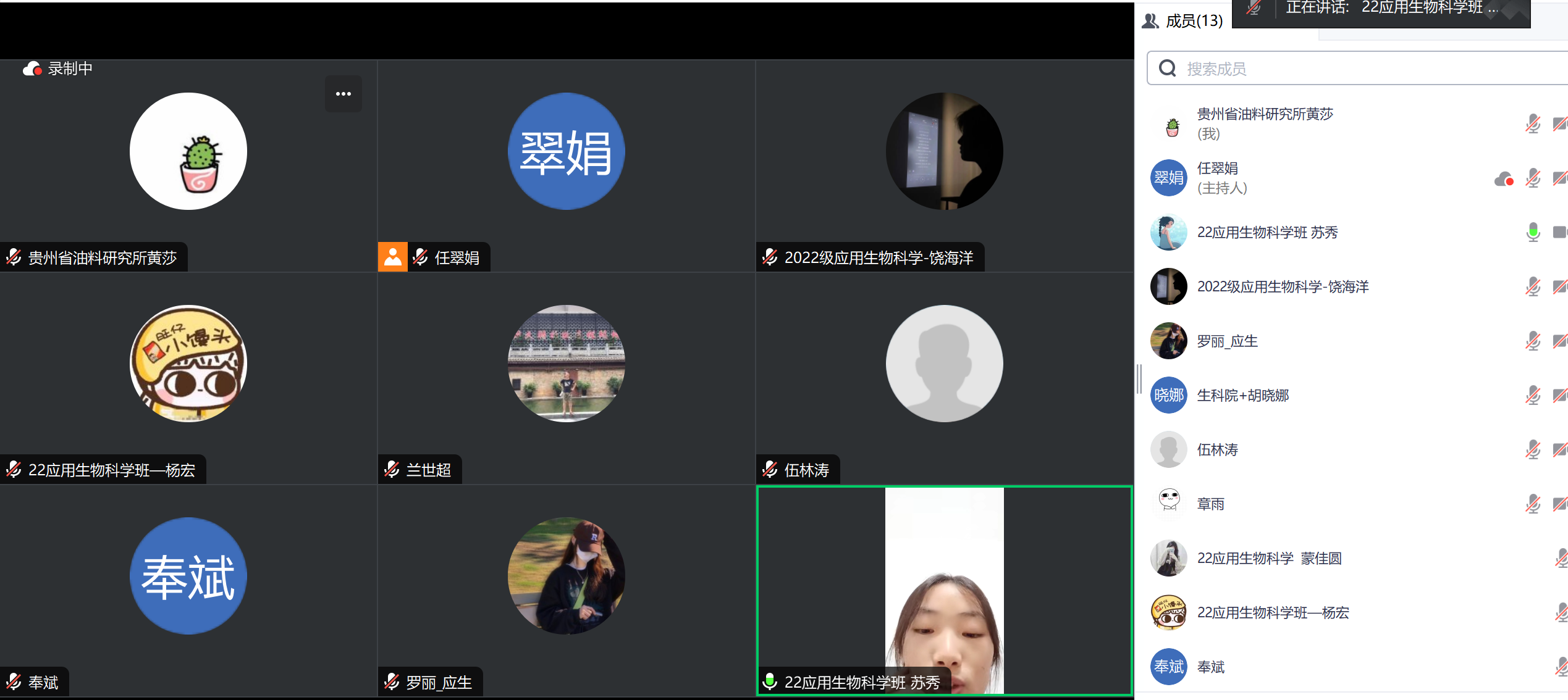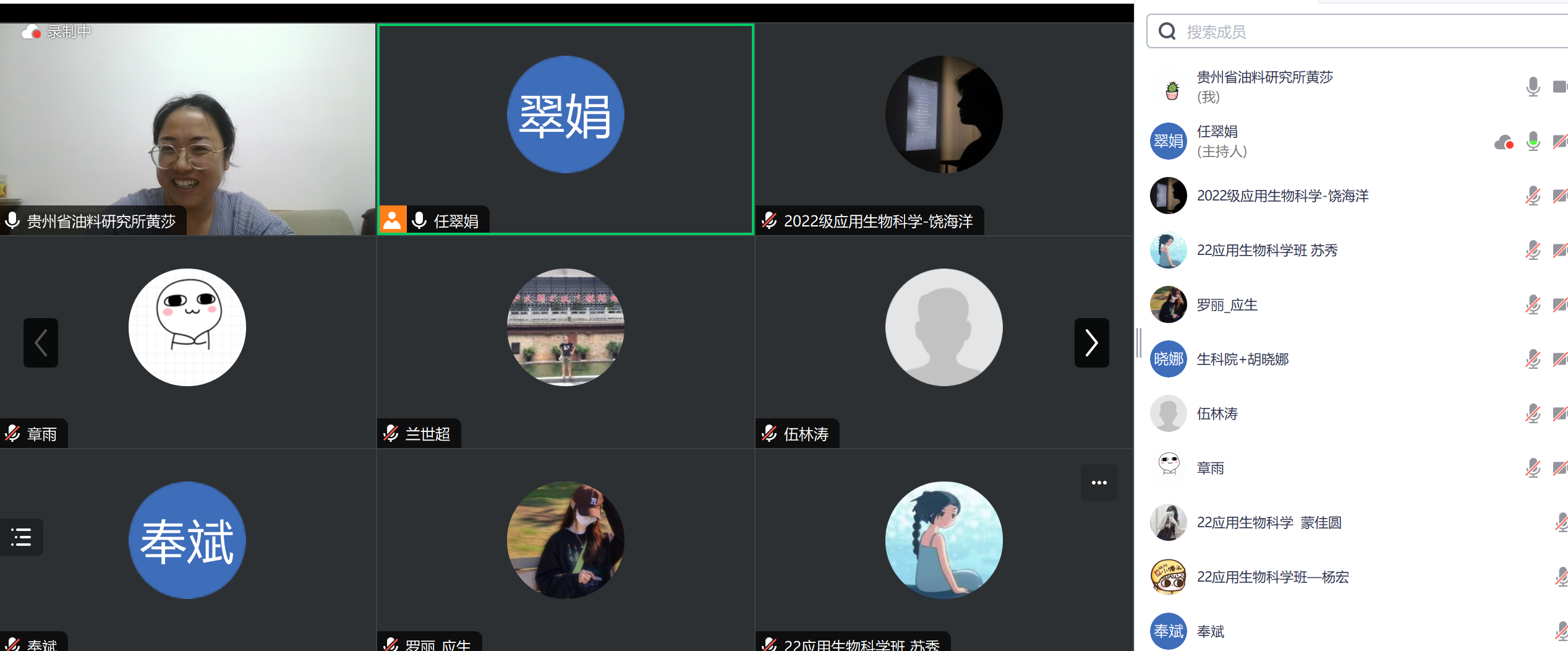 为深化产教融合实效,精准把脉实习质量,2025年8月6日晚,mjm世界杯官网通过腾讯会议平台召开2026届应用生物科学专业生产实习线上巡视(第二小组)座谈会。公司经理任翠娟主持会议,校外实习导师奉斌(贵州省油料研究所)、黄莎(贵州省油料研究所)、罗婧文(贵州省生物技术研究所),校内导师伍林涛、兰世超、胡晓娜及小组5名实习生共聚云端,共商实践育人新路径。
