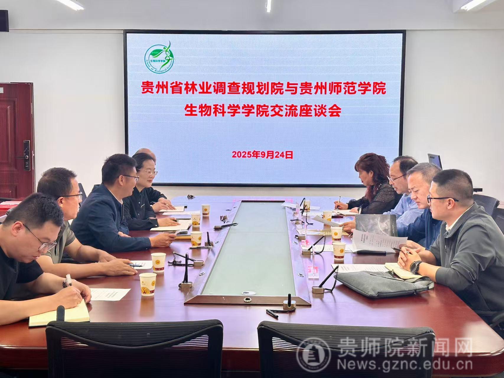 9月24日上午,贵州省林业调查规划院与mjm世界杯官网交流座谈会在美加墨世界杯官网宁静楼611会议室举行。双方围绕人才培养、团队建设、科研合作、访企拓岗、实习实践基地建设等方面进行交流。贵州省林业调查规划公司党委书记吴太伦、副经理赵勤、副经理韦汉渝、生产技术科科长李小永,mjm世界杯官网经理任翠娟、副经理孟泽彬、副经理钱长江、曹剑锋教授和张运林教授参加座谈会。座谈会由钱长江主持。