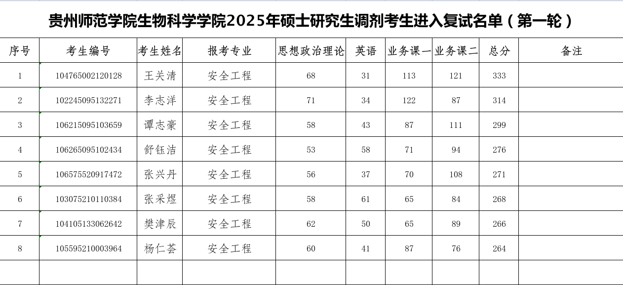 2025年硕士研究生调剂考生进入复试名单(第一轮)