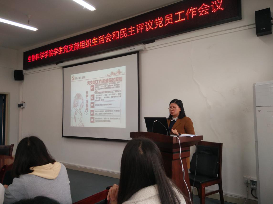 会上,李育芳组织全体党员学习了党的十九大精神和《中国共产党支部工作条例(试行)》,集中讲解了“四个意识”、“四个自信”、“四个服从”和“两个维护”。李育芳汇报了2018年度支部工作情况,认真查摆了工作中存在的问题,并结合同志们的建议提出了整改措施。
