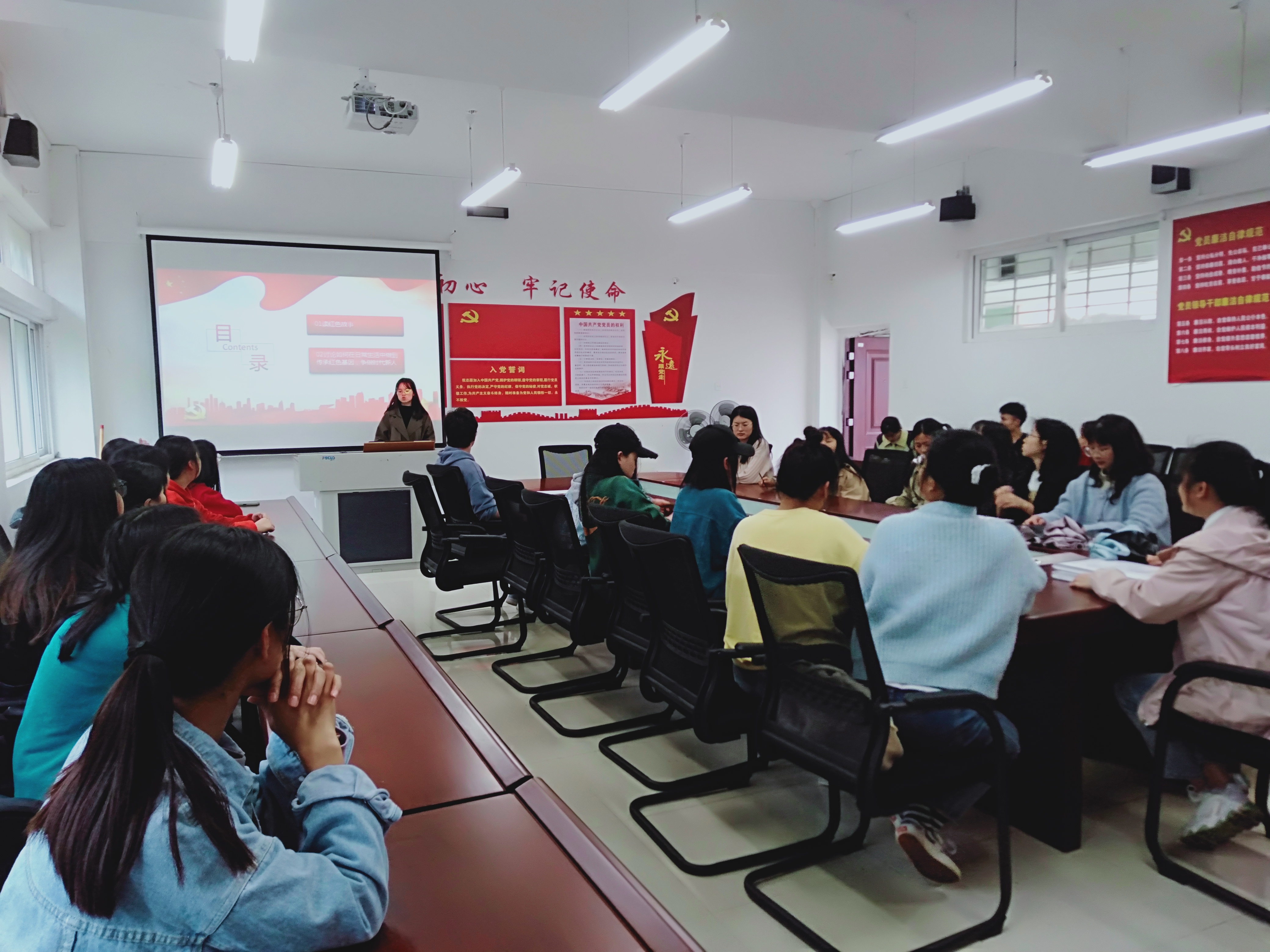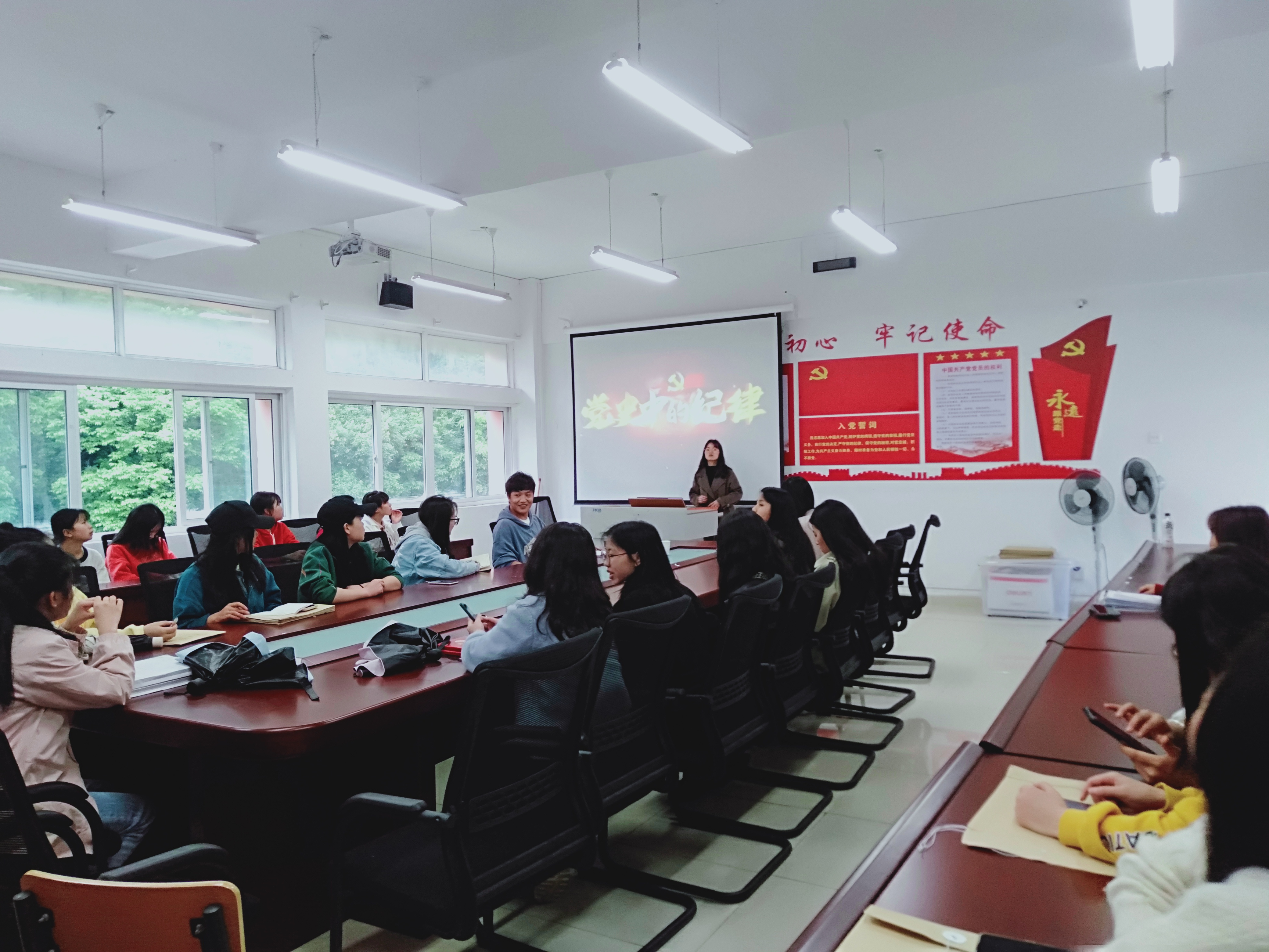 活动现场,毕业生党员石维茂作为主讲人,宣讲红色故事,组织全体毕业生党员讨论“如何在日常生活中做到传承红色基因、争做时代新人?”。接着,全体毕业生党员再学《党的纪律》,从“谈谈毕业后你将如何守住自身的清正廉洁”展开交流。最后,毕业生党员联系自己的实际情况,并分享了自己学习的心得,表示身为一名党员,要始终牢记领袖嘱托,感恩奋进,时刻遵守党的纪律联系自身,进行自我反思,抒发感慨。