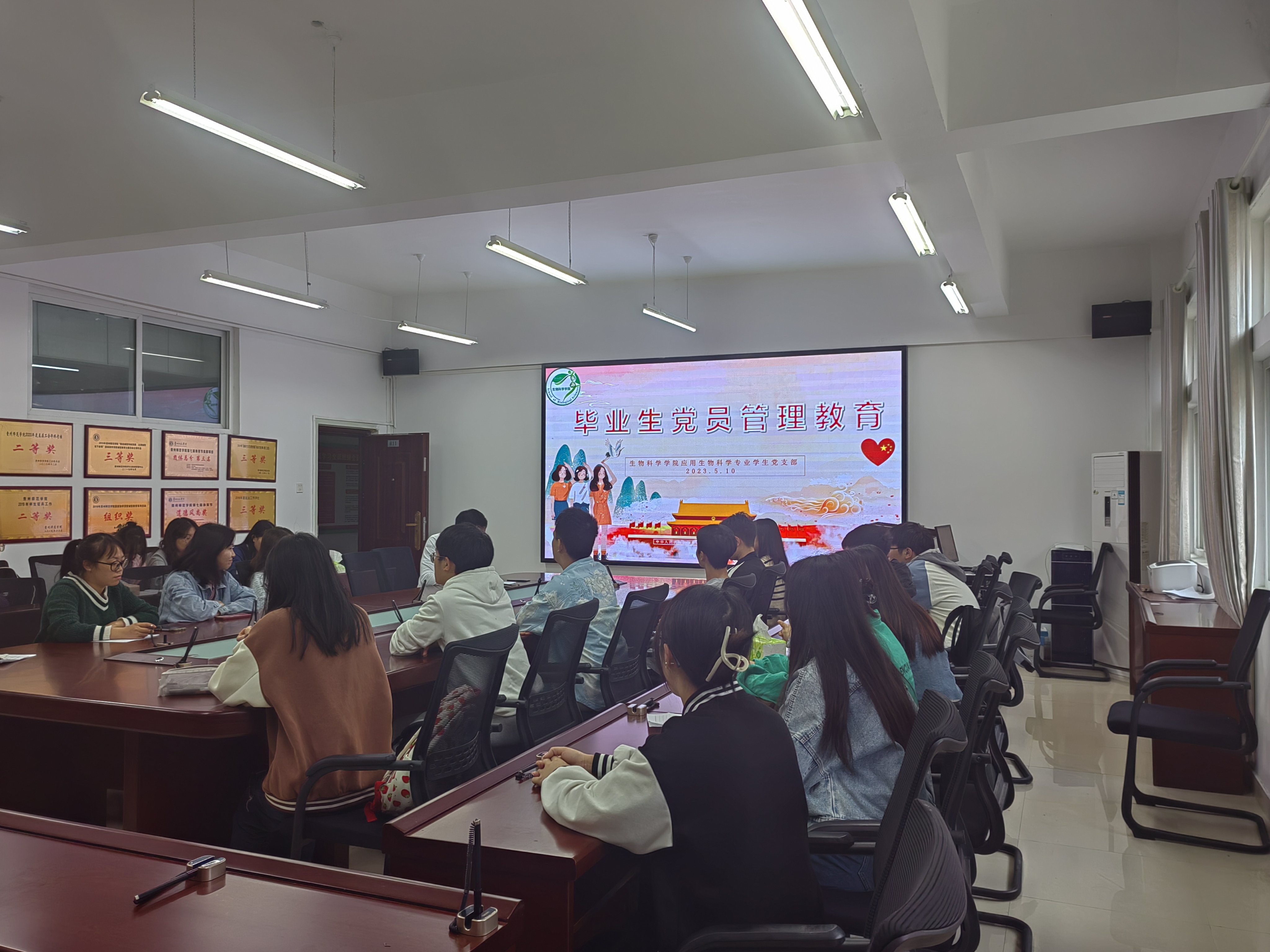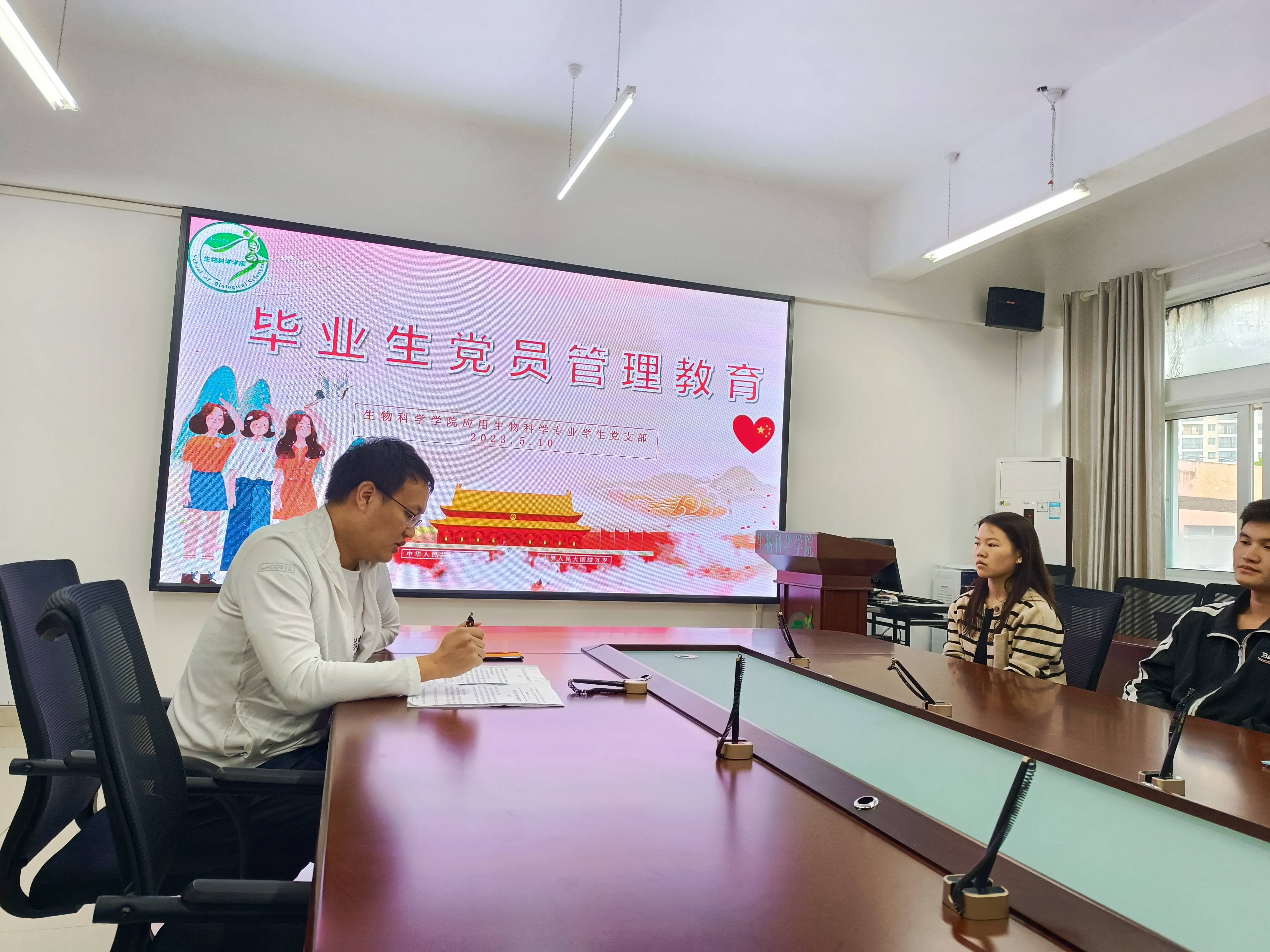 为进一步增强毕业生党员的党性修养、党员意识和社会责任感,认真做好毕业生党员组织关系专业衔接等工作,应用生物科学员工党支部于5月10日在宁静楼611召开了毕业生党员管理教育会议。活动由党支部书记程搏幸老师主持,全体24名党员参加会议。