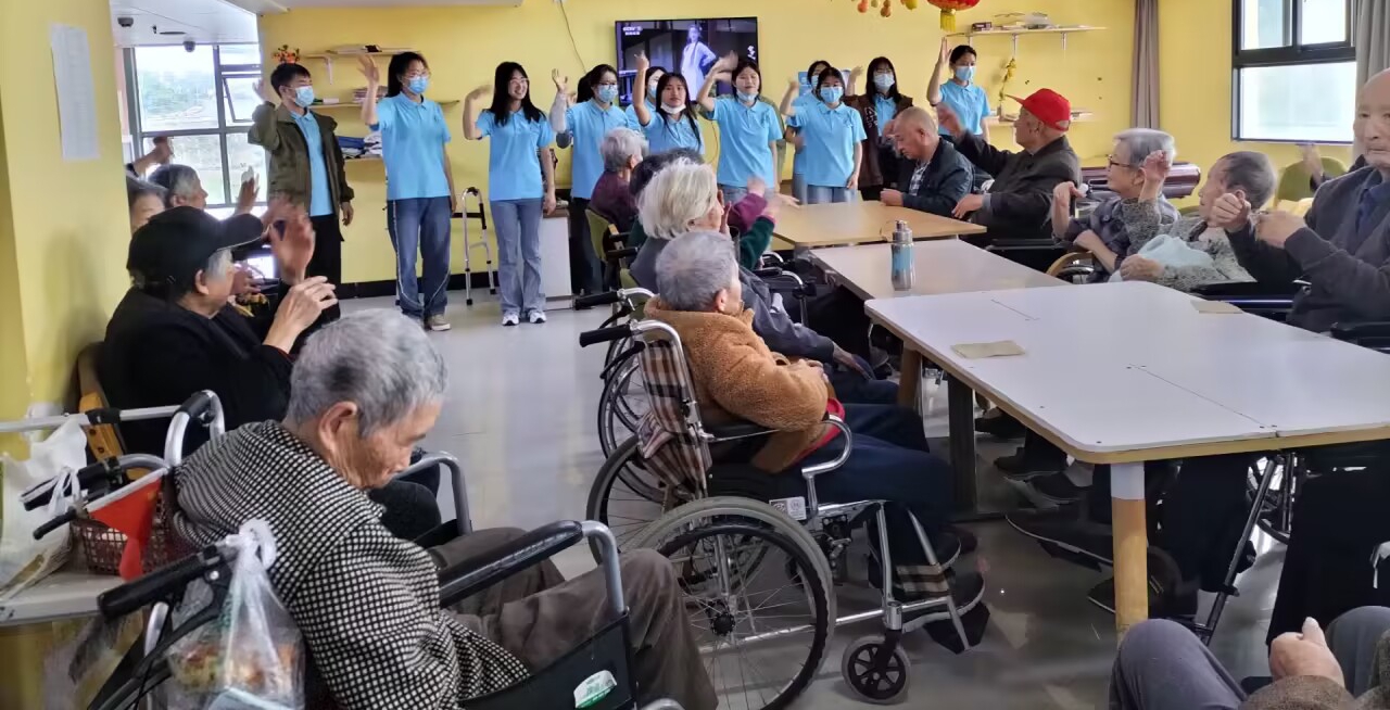 活动当天,员工党员们一走进敬老院就忙活起来,分为三个工作队。第一队在楼下为老人们制作纪念册,为老人粘贴照片并撰写写祝福语;第二队同学们依次为老人们合唱《映山红》《茉莉花》《让我们荡起双桨》《童年》《国家》《是妈妈是女儿》等曲目。第三队教学《中国人民志愿军战歌》《没有共产党就没有新中国》《三大纪律八项注意》等红歌手势舞。